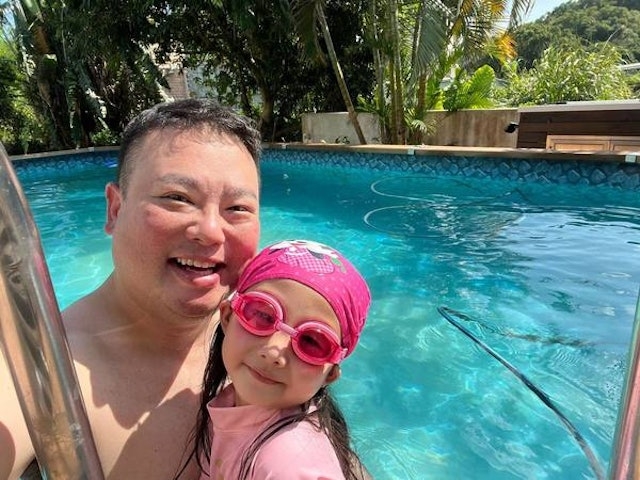 阮德鏘還是圈中出名的「愛妻號」兼「廿四孝老竇」,向來對女兒寵愛有加的他不時在社交平台分享記錄囡囡的生活點滴。9月1日他更在IG一連曬出多張女兒開學前夕的萌照,其中女兒手持一件太太所贈的特別T恤,上面印住「你們玩吧,我爸沒錢了」,十分搶眼。![]()