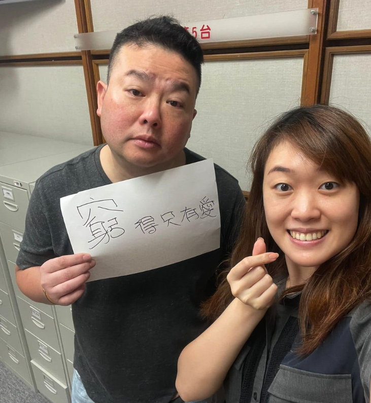 之後亦有傳媒報導他轉型做「家庭主夫」,引用其話指為愛女不介意被人笑窮一事。阮德鏘除了幽默轉發該報導之外,還手持親筆書寫的5字回應:「窮得只有愛」。其中,「窮」字更被特意放大,足見其樂觀心態。![]()
