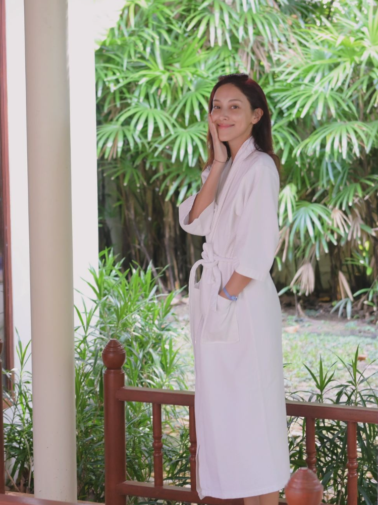 而Grace在海灘邊開心擺Pose,大騷好身材之餘,回到酒店房間穿上浴袍的她更自信曬出素顏自拍照,鏡頭下白滑緊緻肌膚盡現,極佳皮膚狀態令人稱羨!![]()