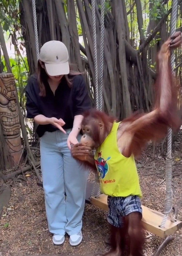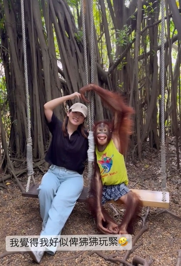 雖然行程時間緊湊,但Erica都享受其中,除了歎美食,更到動物園與狒狒合照,不過她就任由狒狒「擺布」,一齊砌心心擺甫士之外,又要給牠挨住做人肉安樂椅,還要擁抱同錫手,似乎令Erica有些尷尬,事後她亦有PO片並留言:「我覺得好似畀佢玩緊」。![]()