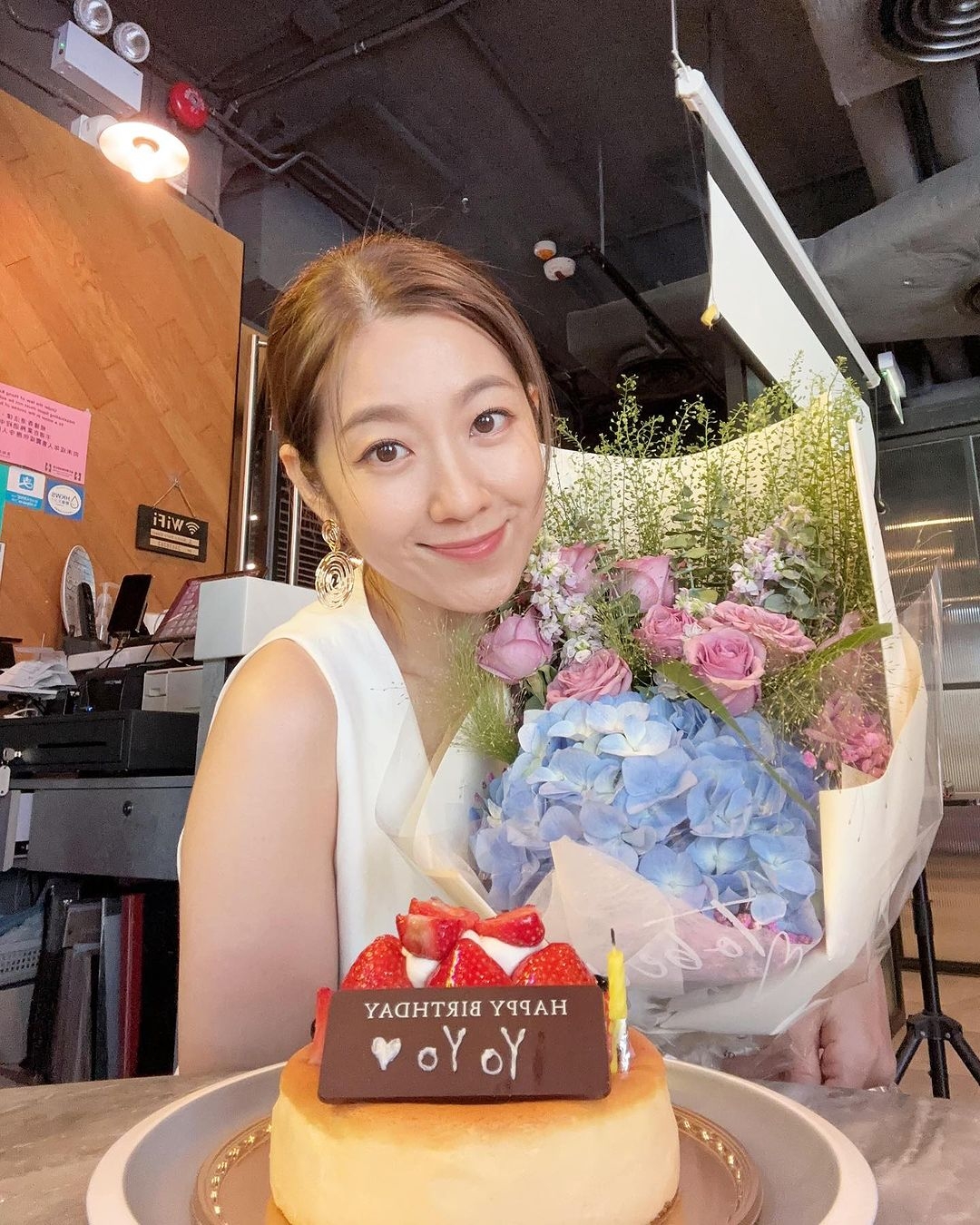 對住這麼可愛的BB,早已身為人母的Yoyo當然情不自禁流露出母愛一面:「今年多了一位小美人和我慶祝,我們仨變成我們伵了」,還開玩笑說自己給小公主「打了一拳」~有愛互動成功俘虜網民!