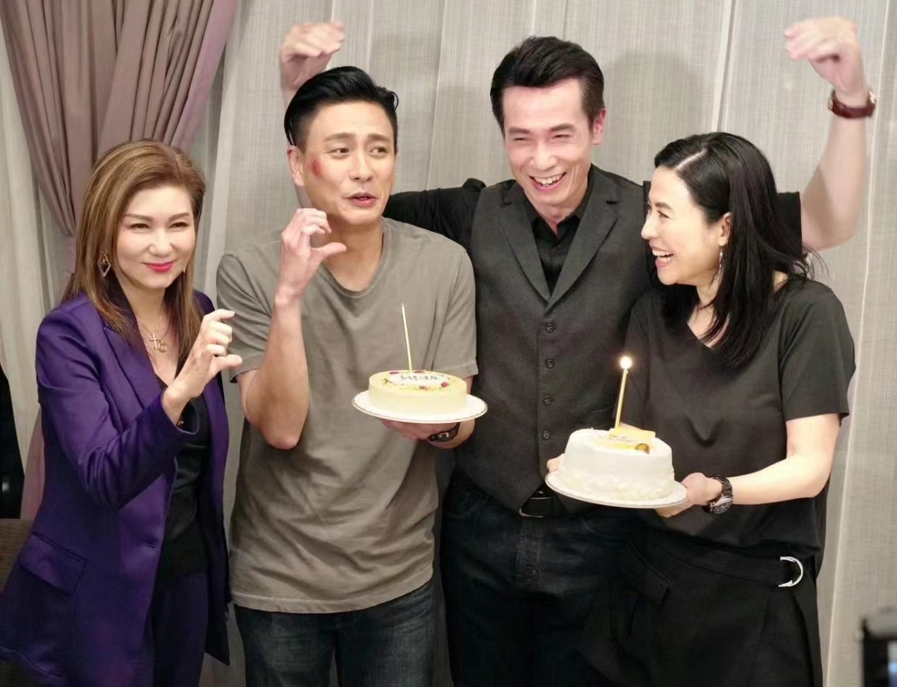視帝陳豪(阿Mo)早前(16日)為新劇《執法者們》開工,撞正53歲正日生日的他獲劇組炮製驚喜,拍檔黃宗澤(Bosco)與宣萱(Jessica)親自為壽星公送上蛋糕並唱生日歌,高層樂易玲也有來探班打氣,場面熱鬧又有愛。![]()