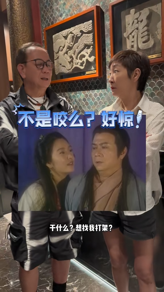 近期進駐抖音的潘翁,不時拍片與網民分享日常。近日,更邀得27年前曾在《天龍八部》中合作的雪梨(嚴慧明)合體拍攝短片。近年鮮少亮相幕前的雪梨,對上一次現身已經是自今年4月,再加上「康敏」重遇舊愛「段正淳」,當年跟多個女人糾纏不清的風流王爺段正淳被康敏狠毒報復咬下肩頭肉的一幕可謂相當經典,即勾起觀眾集體回憶!![]()