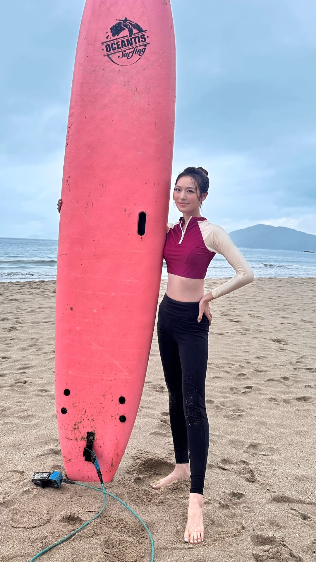 原來是Crystal早前為電視劇《逆天奇案2》拍攝滑浪戲份,儘管劇中只出現短短數秒鏡頭,她仍然非常認真對待,劇外專門學習滑浪,如今更因爲這個契機愛上這項運動,認真好叻!身穿一件頭泳衣的她好身材一覽無遺,零贅肉纖腰加上白滑美腿相當搶焦,小露性感的同時又盡現青春無限,網民看到都忍不住激讚:「條馬尾好正」、「背脊好靚呀!」、「滑浪美女」…![]()