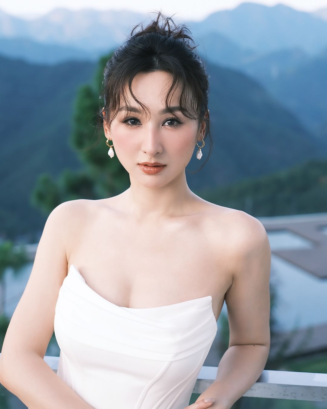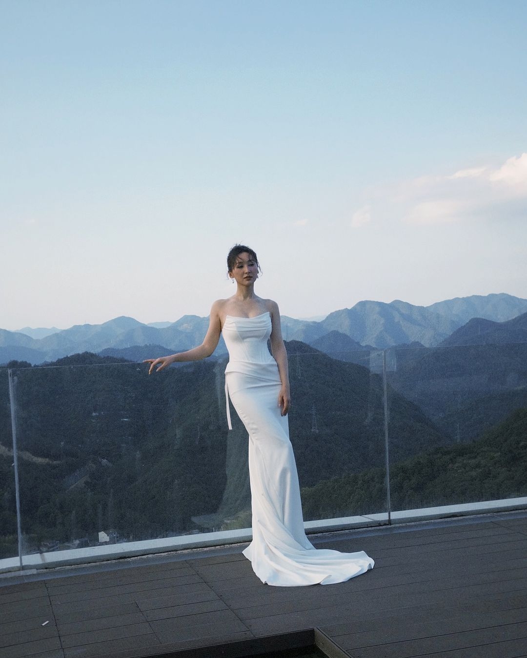 高海寧昨日(4日)曬出了在野外拍攝的一輯白色婚紗禮裙寫真相,見背後山脈高聳入雲,給人一種頓入仙境的感覺,和高Ling的遮一身仙氣造型簡直襯到絕!高Ling也留言說吸收了這裡的新鮮空氣,讓她整個人都感覺心曠神怡!