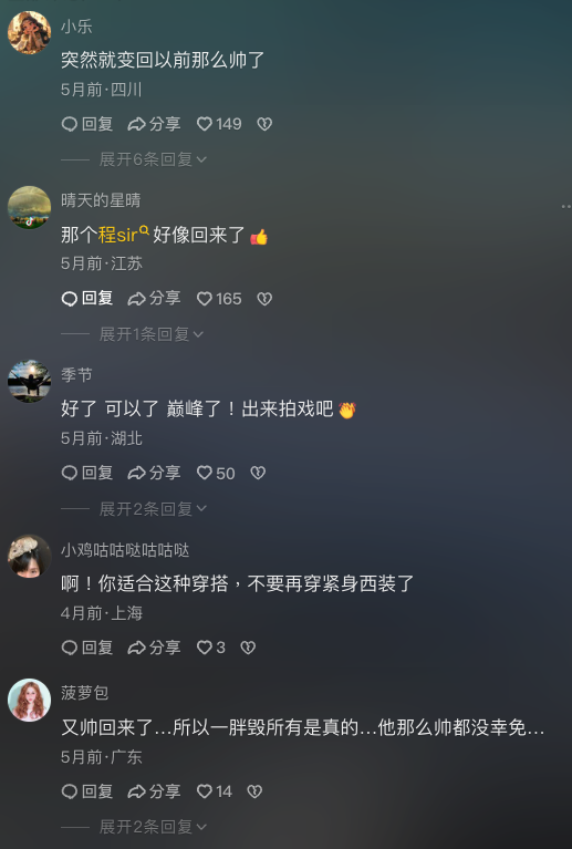 而魏駿傑本人自2020年與太太張利華離婚後,就幾乎絕跡幕前,近年他轉戰抖音等內地社交平台,去年底更推出翻唱新歌,極佳的狀態令網民驚呼「「那個程Sir」好像回來了!」,瞬間夢回他與滕麗名拍攝《陀槍師姐》。不過從他po出的新片中不難發現其體重又似乎有回落,減肥路漫漫,期望可以見到他更多工作新動向啦!![]()