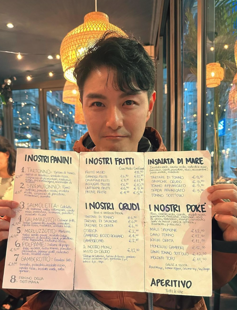 旅途中除了充滿粉紅泡泡之外,亦發生不少趣事。 Edwin利用「高科技」將意大利文餐牌轉成中文,結果笑料百出。Edwin貼文「感謝科技,讓我在哪裏都能輕鬆點菜。」「好吧….今晚吃…去他X的坎博裡、鮪魚榨汁機,看…懂意大利文的男人是吸引的,Ciao。」相當搞笑!