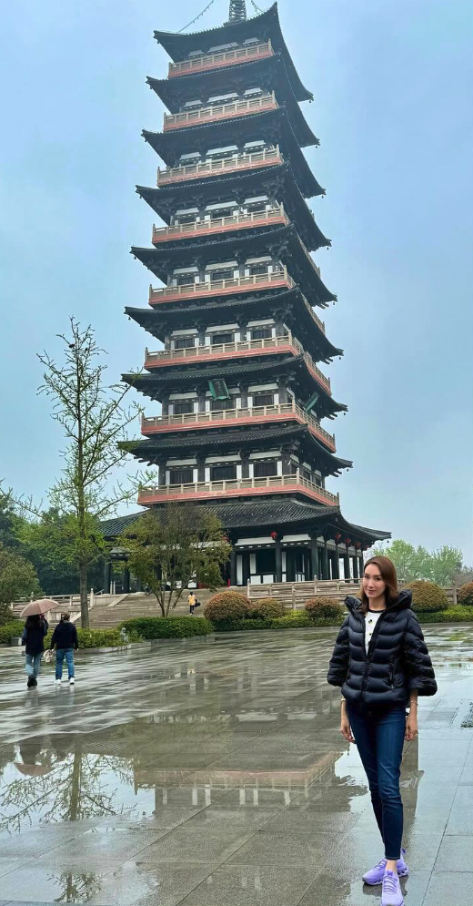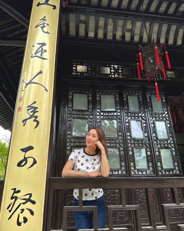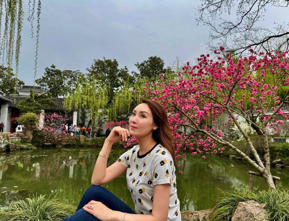 郭可盈2004年與林文龍結婚,2010年誕下愛女林天若,結婚20年夫妻依舊非常恩愛,不時在社交平台分享出遊合照甜蜜放閃!一家三口繼杜拜、上海之行之後,郭可盈又孖老公林文龍、女兒林天若(8日)一同赴揚州遊玩,當地風景美不勝收,她當然不忘留下倩影,與花兒自拍,女神360度無死角,清晰可見的白皙皮膚以及超fit身材獲得不少網民激讚,稱「人比花嬌」,「風景好美,不過人更美」,53歲狀態令人稱羨!