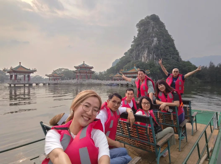 其實李成昌經常會相約一班綠葉同事一起行山或者北上行歎生活,像是魏惠文、曾慧雲、邵卓堯、黃梓瑋等都是團隊中的常客。日前(14日、15日),李成昌也在社交平台分別上傳了兩張他們在廣東肇慶遊船河的照片,見相中的李成昌和魏惠文更是站起身、大擺pose影相,看來玩得也是相當盡興!![]()