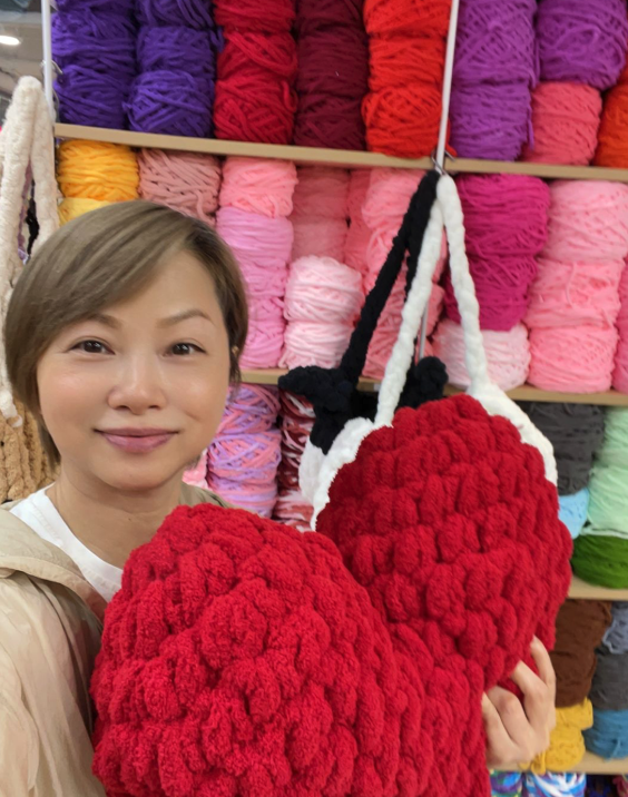 昨日(29日),劉玉翠在社交平台貼出多張跟劉鑾雄太太「甘比」陳凱韻學鈎織的相片並留言道:「前幾天回去,我去了甘比那裡做編織,裡面好多好可愛的作品,劉太就說,你想到甚麼就可以做甚麼,真的是有很大的創作空間了。想想現在在這個快節奏的世界裡,也許我們每個人都在尋找一片屬於自己的寧靜之地。像我自己會喜歡沉浸在自己的藝術世界,所以我覺得編織不僅僅是一種手工藝,它像自我療癒的方式,給人一種心靈的慰藉的感覺。」劉玉翠更大力推介甘比的針織店:「看到很多好玩的作品也很開心啦!希望你們看到彩色的東西也會感覺到很開心,悄悄告訴你們我還拍了視頻,過幾天發給你們看,一起來感受一下店裡吧。」非常懂得生活樂趣。