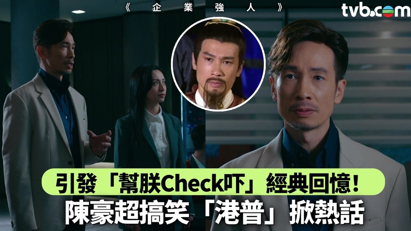 當晚一大亮點,是陳豪的招牌式「港普」。由於運送原子筆前往哈爾濱期間遇上大風雪,為了激勵前線員工如期將原子筆送抵目的地,趙愷親自透過電話向前線員工發出請求及指令。雖然相關劇情緊張又嚴肅,但隨著陳豪自我介紹時將「趙愷」說成「蕉凱」、「發展」說成「發剪」,整段對白又似唱出來多過讀出來,頓時為劇集釋出高度喜感,不少網民對於這種出乎意料的搞笑場口大表讚嘆,更因而引發了陳豪「幫朕Check吓」的經典集體回憶,網民留言:「好好笑,那麼嚴肅的時候我笑了」、「絕對是劇集亮點搞笑場口之一」。另陳豪在內地為《企業強人》出席宣傳活動時,亦因將「善戰」說成「線煎」、「我會」說成「我愧」發放無限笑彈,在旁的張曦雯見狀即幫忙講回陳豪想要表達的正確意思,成功為活動炒熱氣氛。