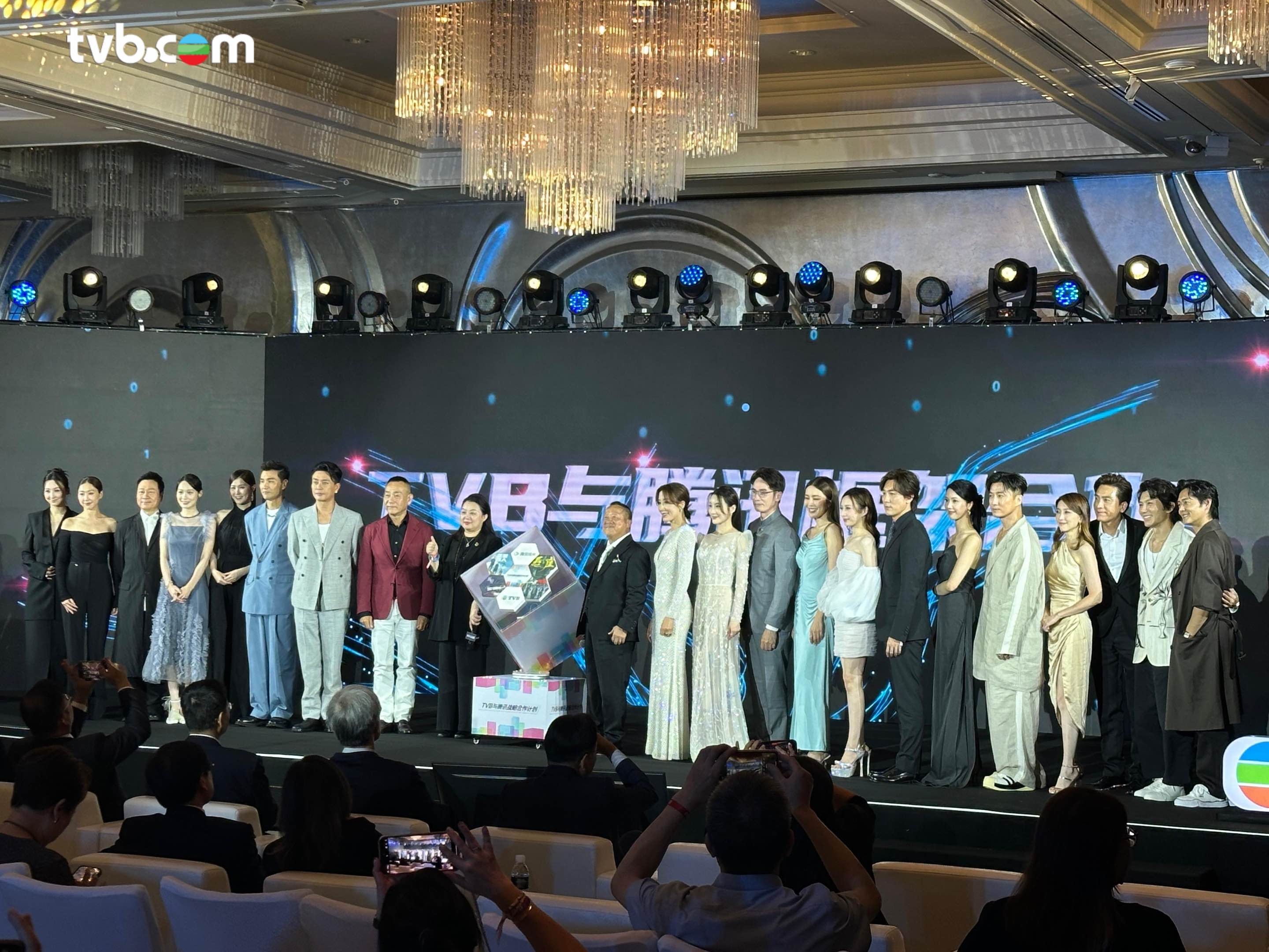 今日(25日)下午,無綫與內地平台在上海波特曼麗思卡爾頓飯店舉行合作發布會《你好TVB》順利舉行。會上宣布,無綫將於優酷及騰訊合作推出八部重頭鉅製劇集,分別是:與優酷合作的四部劇集:黃宗澤、袁偉豪及蔡潔主演的《法證先鋒VI倖存者的救贖》、楊茜堯及林夏薇主演的《黑色月光》、宣萱、陳煒、陳展鵬、劉佩玥主演的《巨塔之后》及黃宗澤、高海寧、馬國明、陳曉華主演的《新聞女王2》;與騰訊合作的四部劇集:陳山聰、張振朗、袁偉豪、姚子羚主演的《反黑英雄》、陳豪、譚俊彥、張曦雯、龔嘉欣主演的《企業強人》、黎耀祥、胡定欣主演的《巾幗梟雄之懸崖》,及林保怡、張振朗主演的《刑偵12》。