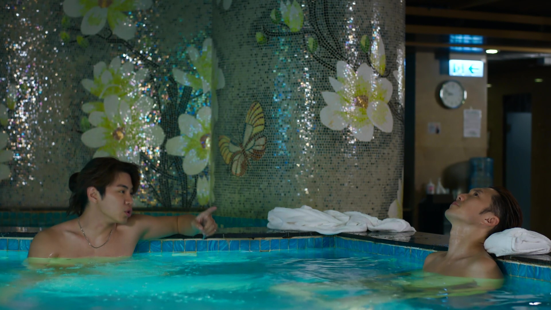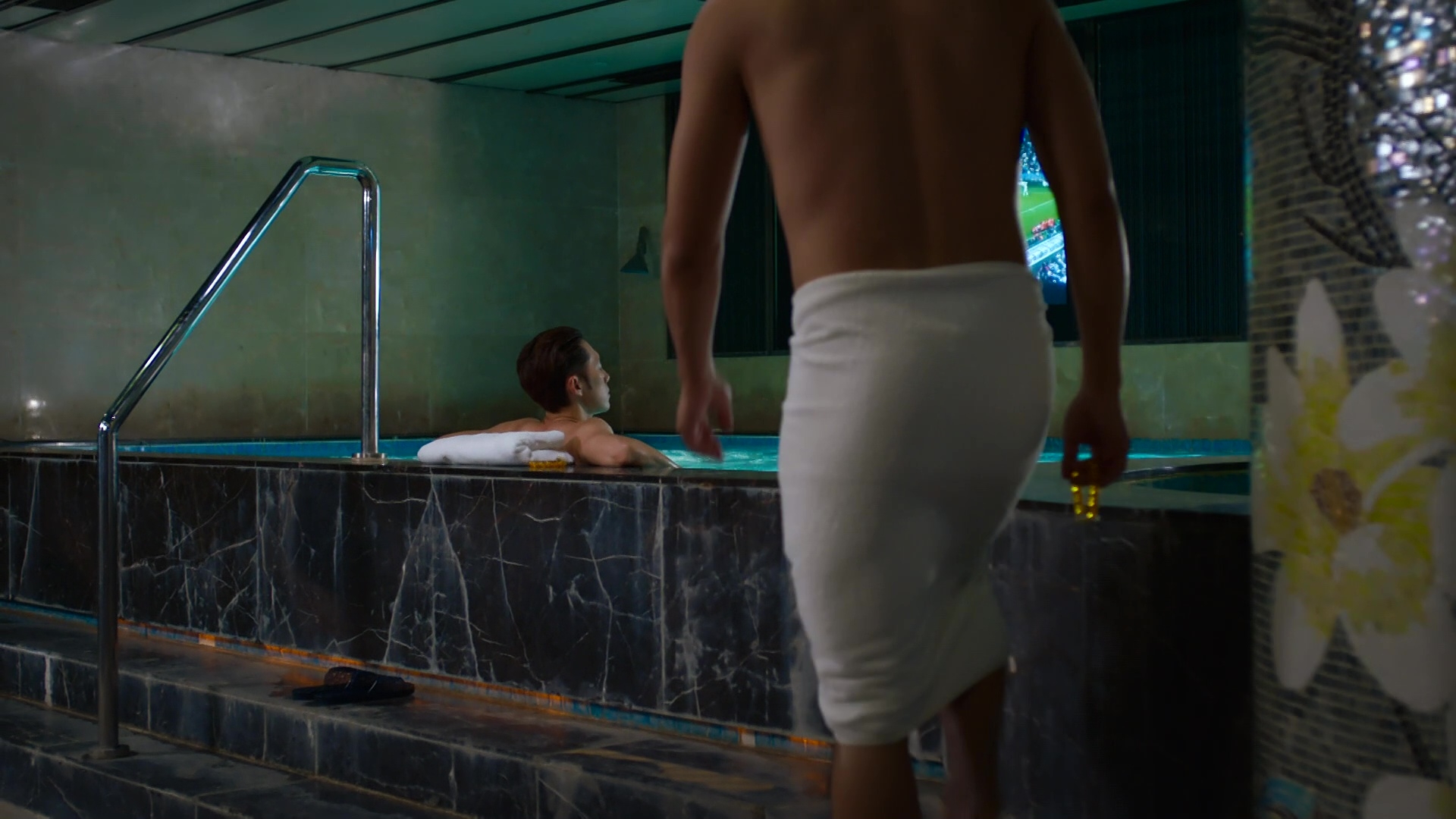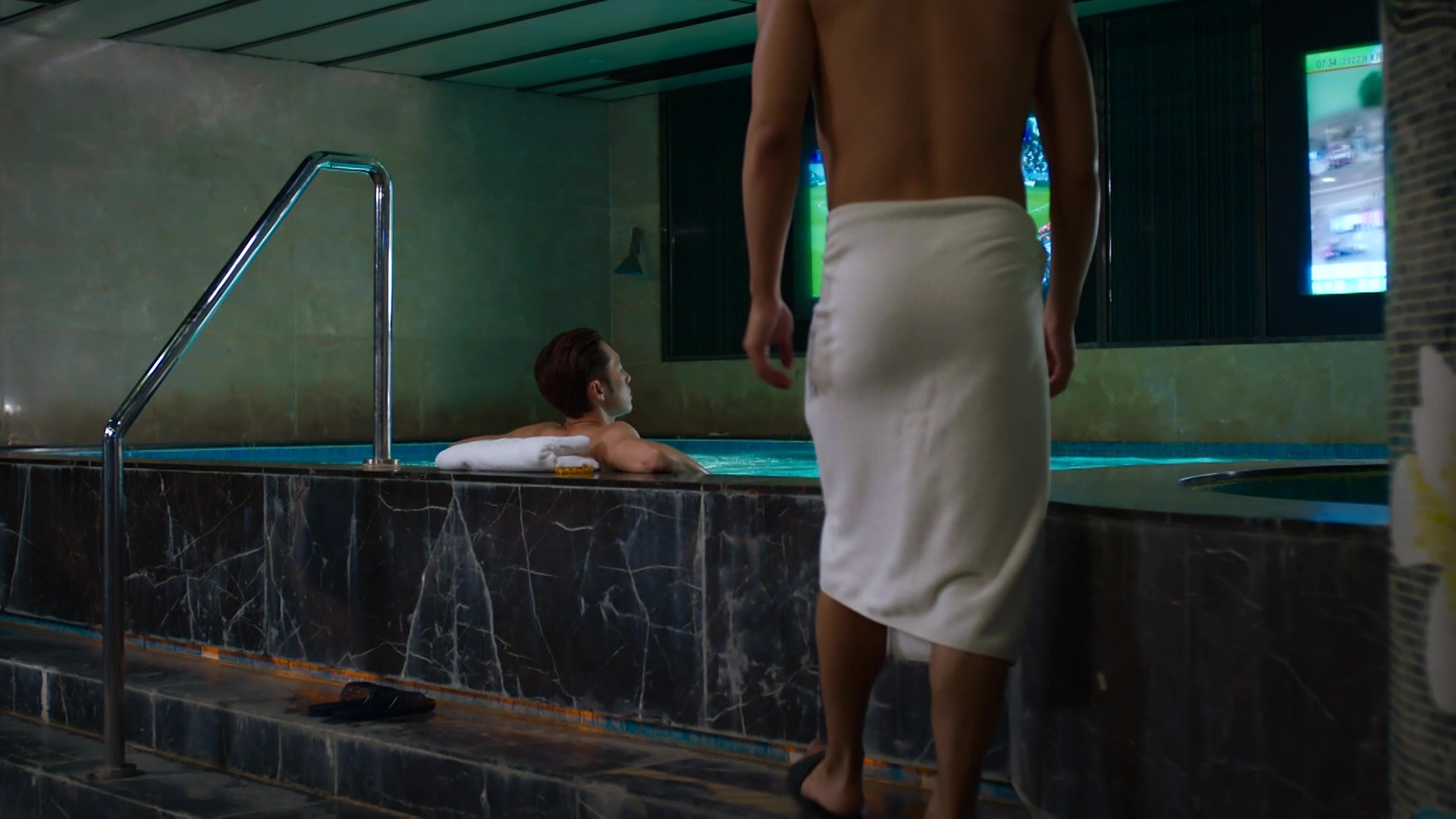 羅天宇繼半裸騷結實腹肌兼胸肌,今晚(6日)一集再向觀眾派福利!將與麥秋成將上演一場半裸桑拿浴戲碼,兩人盡騷健碩身材,當中下身僅包毛巾上陣的天宇更有背面大特寫,臀部線條極之突出,成功搶盡焦點!