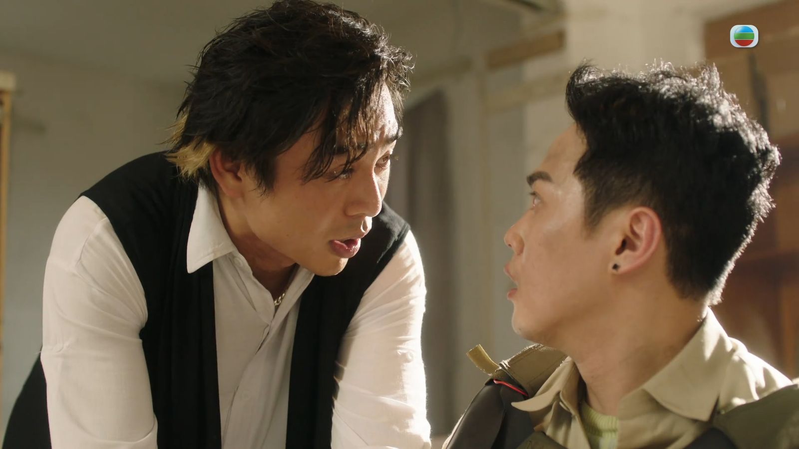 在直播節目進行中,旭輝不僅要求出現的兩位警察接受質詢,還把一部直播著子俊與芷菲被綁架的手機送到了電視台。這一舉動讓節目的緊張感瞬間升級,觀眾們的心也隨之提到嗓子眼。旭輝利用這場直播,逼迫芷菲對刑凱進行心理分析,甚至以子俊的性命威脅她,這讓整個節目的氣氛變得更加壓迫。