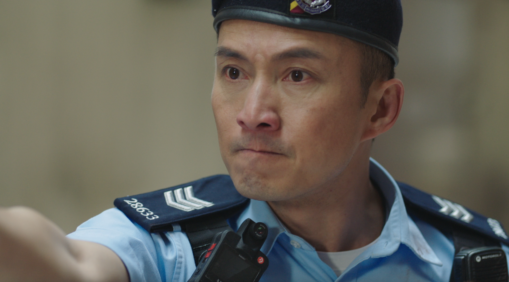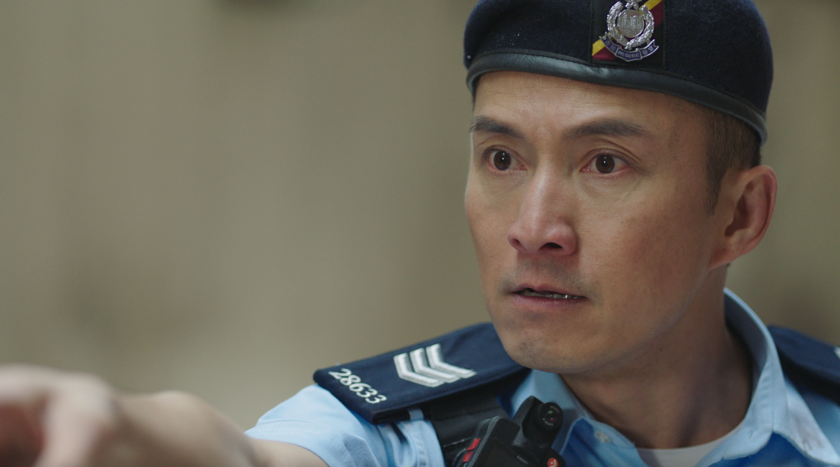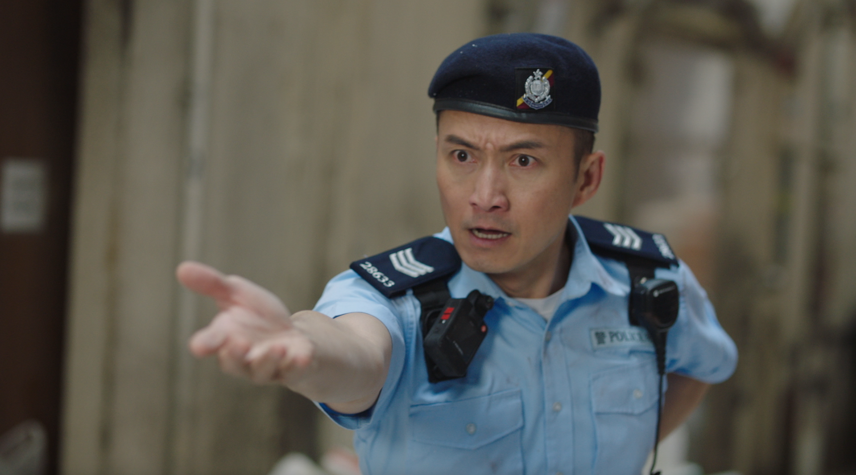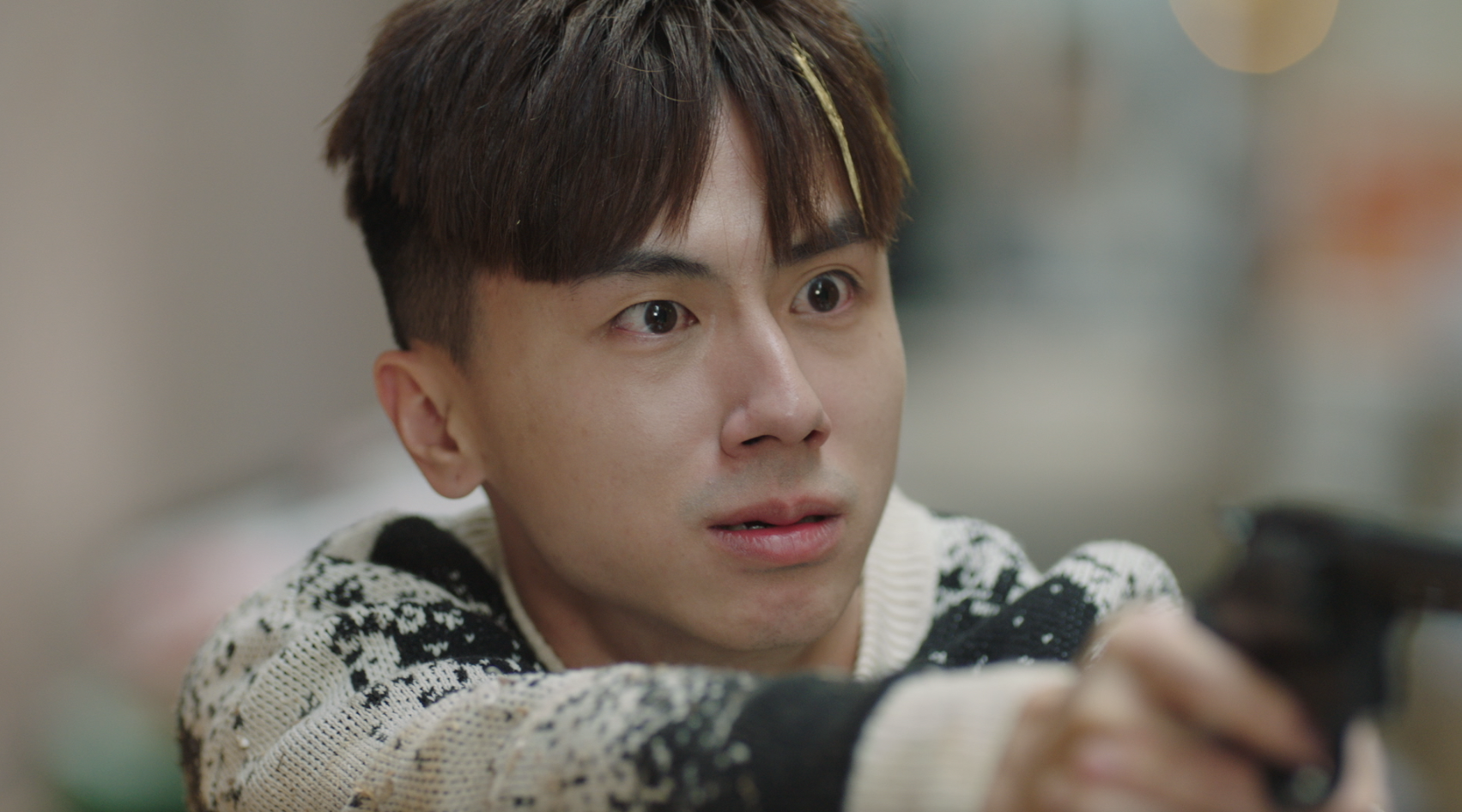 智軒(陳山聰飾)發現孝占(丘梓謙飾)行蹤,拼命追捕,孝占為逃避不惜從天台高處一躍而下。智軒為救人一同掉下天台,混亂間,智軒佩槍掉在地上,孝占竟拾起佩槍並舉槍指嚇智軒……