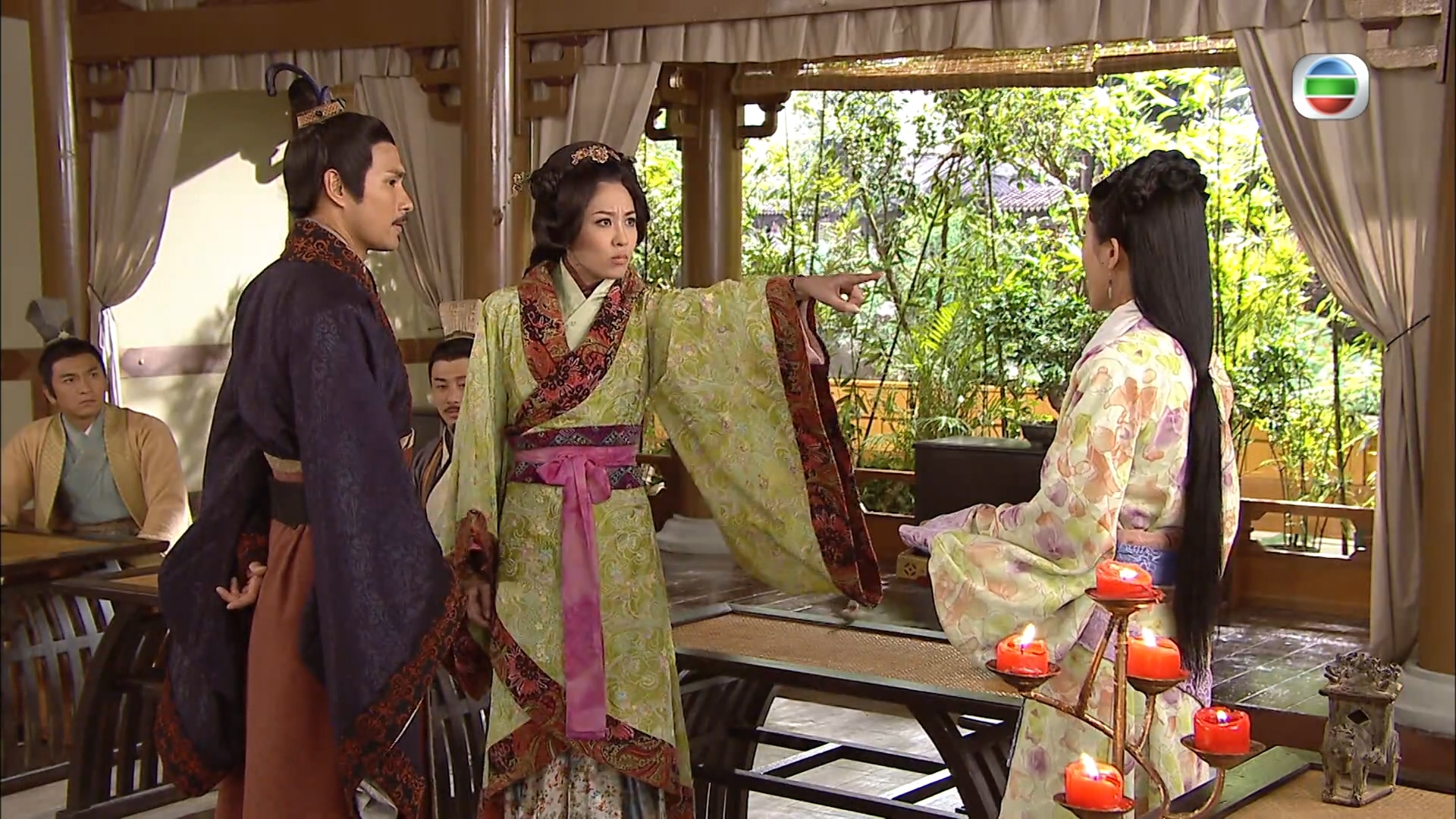 桑柔獨坐花園中納悶,司馬信上前安慰她,指小喬有公主病,謂月英(梁嘉琪)比小喬好得多,又指周瑜貪圖小喬美色等,剛好周瑜經過,把司馬信的話都聽進耳中。