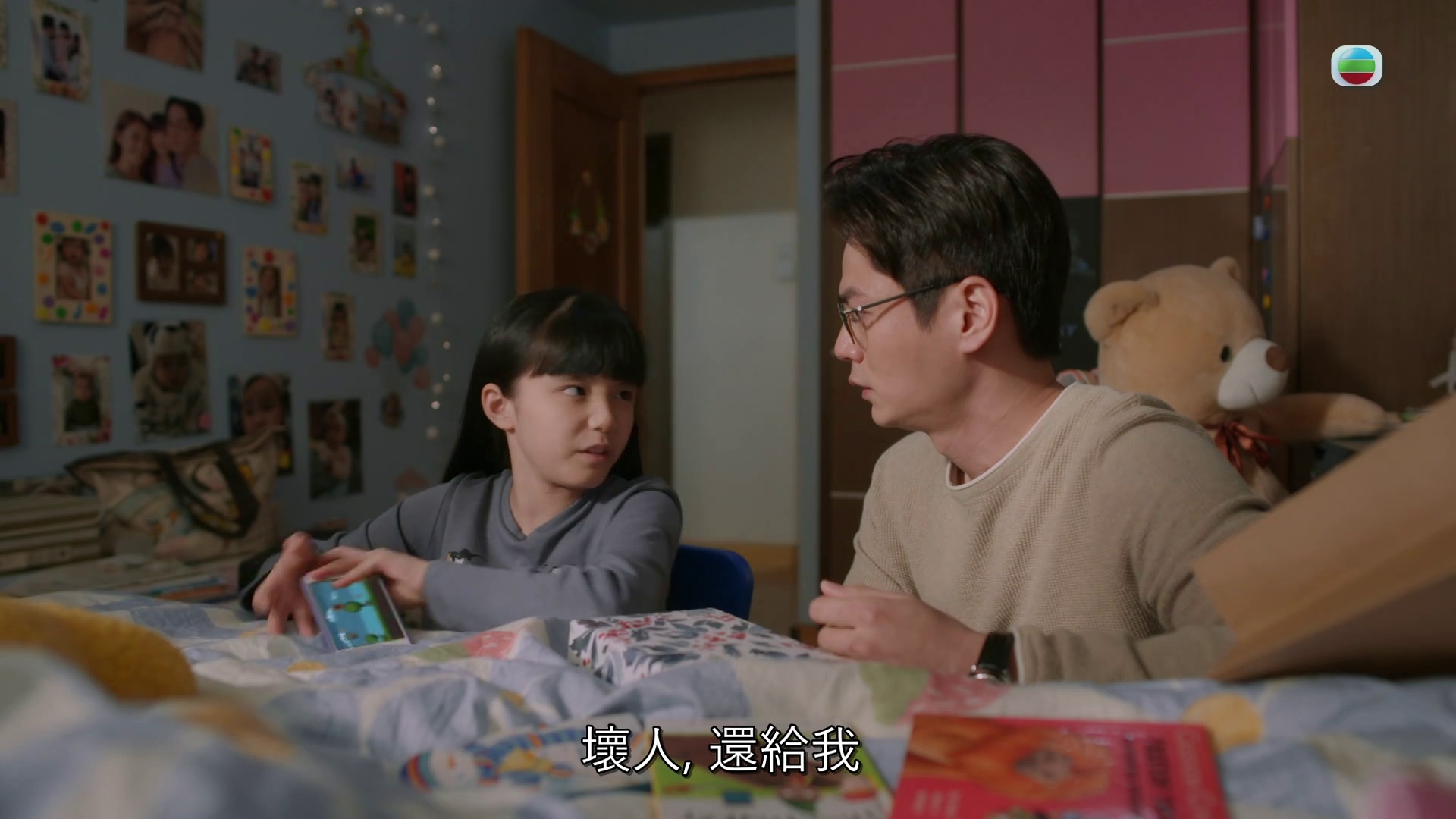 在第一個視點,善仁回家探望前妻明芯(陳自瑤飾)與還沒有原諒自己的女兒悅悅(鄭淽月飾);善仁入房後溫柔地著悅悅不要玩手機,悅悅不但沒有理會、更沒有正眼望過善仁,兼且句句說話夭心夭肺。善仁先感謝女兒答應讓他回家吃飯,豈料悅悅寸嘴回應:「我應唔應承,佢都係照叫架啦。」大感錯愕的善仁回應:「我知道你仲好嬲Daddy,雖然Daddy媽咪係分開咗…」,悅悅再態度惡劣接話:「都係咁錫我吖嘛,唔好再講廢話喇。」善仁終忍不住著悅悅不能這樣說話,並沒收悅悅手機,悅悅一臉不屑搶回手機之餘,再說:「唔到你管我呀,係你當初揼低呢個屋企先架…我放棄咗你好耐啦,你咪同嗰個女人一齊咯,鍾意做乜就做乜咯,唔使再扮好人架喇喎,我唔想再見到你呀,走呀!」之後更怒推善仁出房外,場面令人唏噓。對於童星月月的寸嘴演出,網民再度讚不絕口;而對於悅悅由乖乖女變反叛,更是慨嘆父母離婚對小朋友造成的影響。![]()