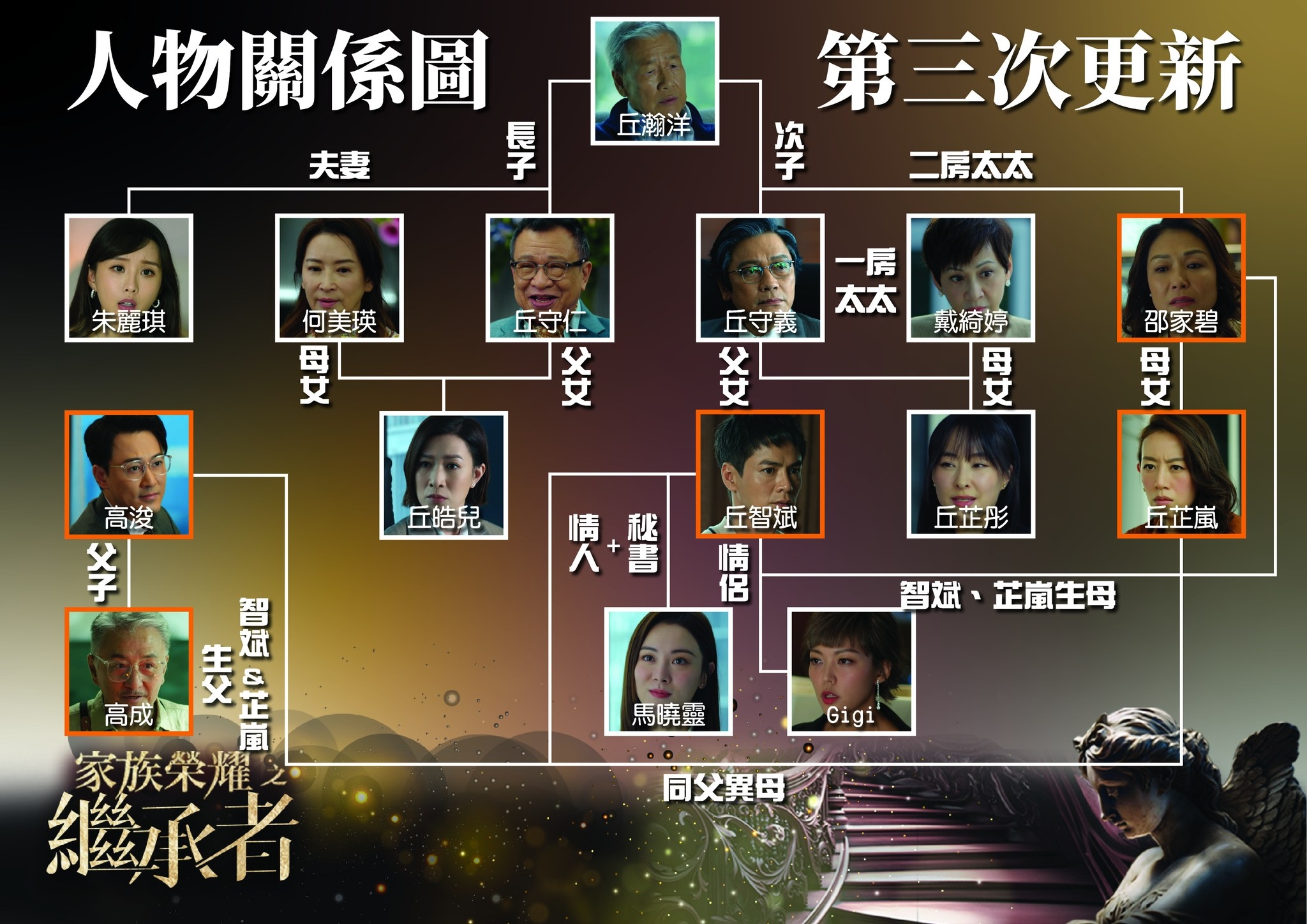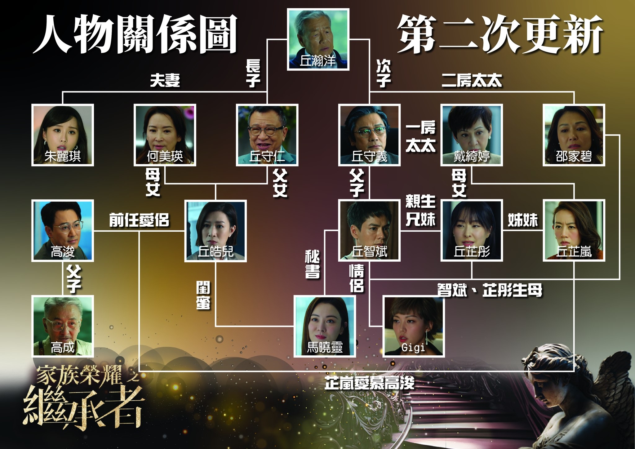 家族榮耀之繼承者關係圖|人物關係圖第三次更新 豪門關係錯綜複雜 佘詩曼/林峯/羅嘉良/羅子溢飾演