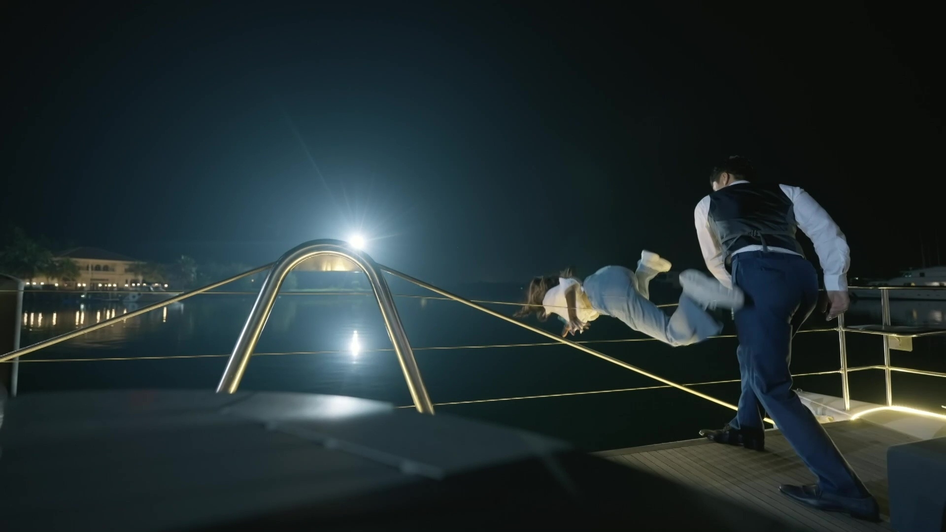 劇組日前亦釋出了相關場口拍攝花絮,片段所見,Toby由遊艇跌落水的一刻十分驚險、與遊艇的距離驟眼看相當近,令不少網民好奇是Toby親身上陣還是替身。對此Toby受訪時透露原本她堅持親身上陣,但卻遭到現場台前幕後阻止:「真係跌落海唔係我,嗰位女仔替身飛身出船邊嗰吓都好驚險,我自己喺側邊睇都有戥佢擔心,但最後個頭跌落海嗰個係我自己。嗰一幕都拍咗幾耐吓,因為真係要沉落去,拍第一個Take時我浮起咗,第二次拍就加咗啲啞鈴,希望有重量加持可以沉多啲。後尾都唔得,就要由著住潛水衣嘅工作人員潛入水底幫手拉我落去,等我拍出嚟好似真係沉落去咁。」