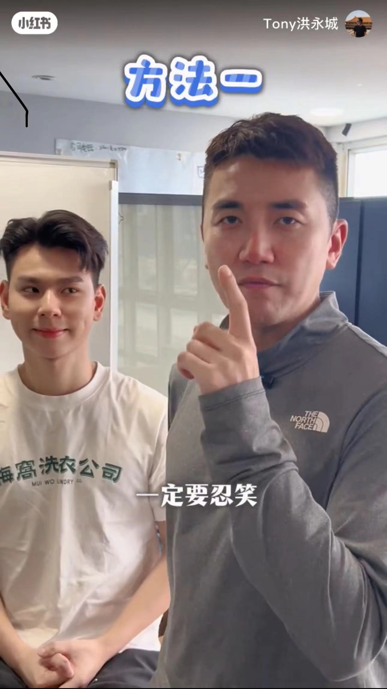 Tony強調此方法必須要忍笑:「先用後腦對着鏡頭,慢慢走近你嘅對手,跟住同佢眼神示意。」