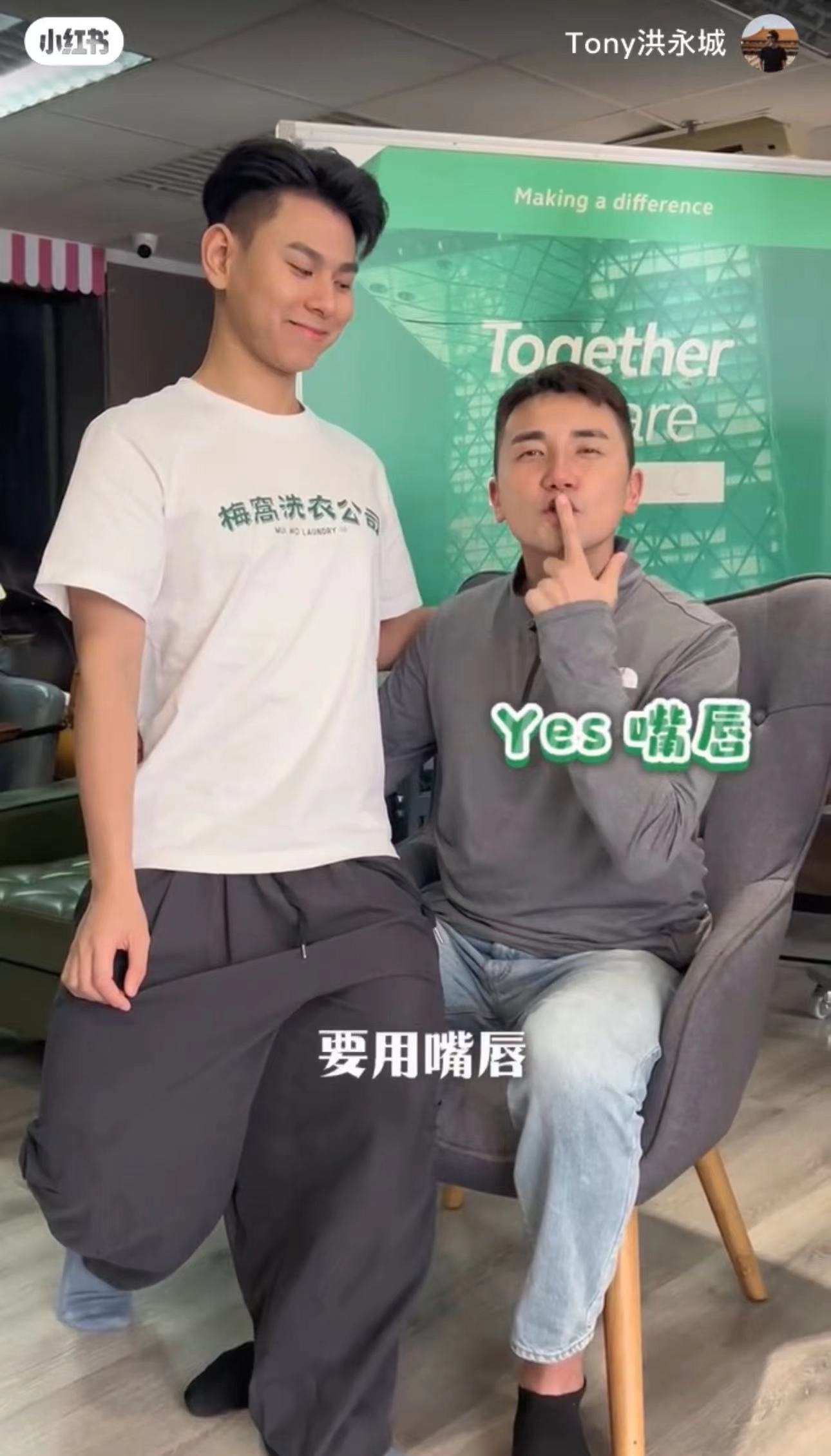 從片中可見,當Tony看到老婆同子溢演咀嘴戲時,他呷醋地說:「又錫、再錫,有冇搞錯呀!使唔使次次都真錫呀!羅子溢,我教你3種方法可以拍到好似係真錫咁。」Tony更找來蔡景行做對手表演,兩人投入、誇張的表現,令網民在評論區瘋狂爆笑留言:「影片好笑程度100%,影片是洪永城發的好笑程度10000%」、「竟然有人拍影片教人吻戲,不過如果真是按這些動靜,Inez一定冧爆」。