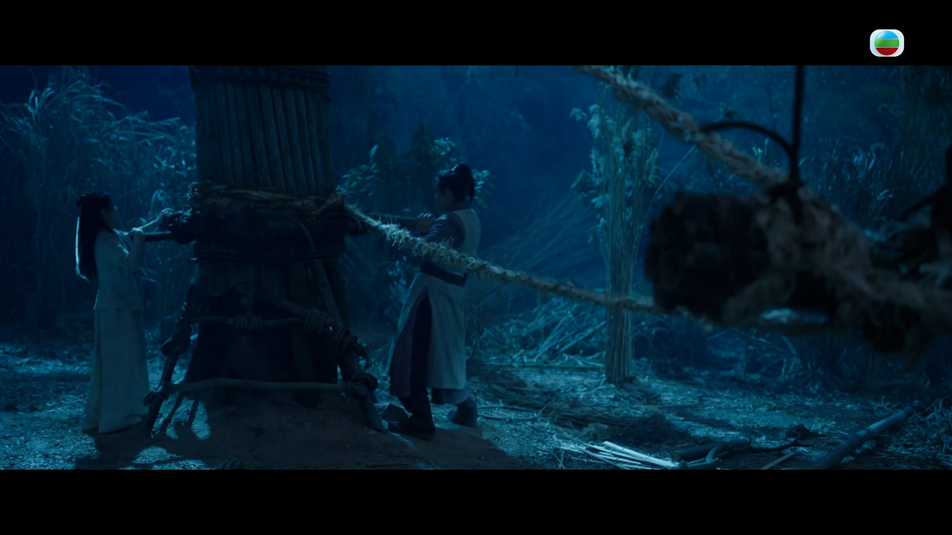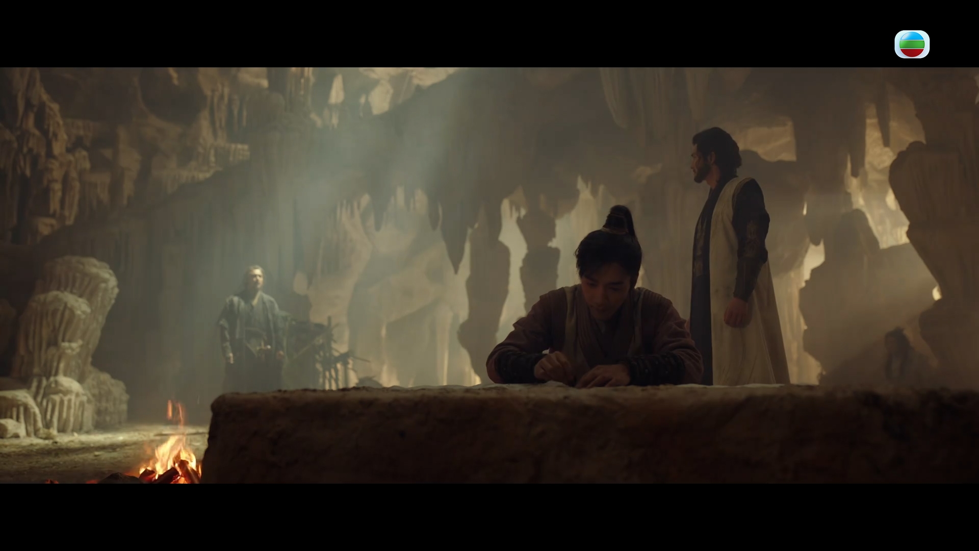 郭靖(此沙)和黃蓉(包上恩)利用竹排挪開巨石,令歐陽鋒(高偉光)可以救出歐陽克(張志浩)。歐陽鋒對此毫無感激,更要求洪七公(明道)讓出洞穴,方便歐陽克休息。其後又捉走洪七公,要脅郭靖默寫《九陰真經》。幸好黃蓉機智聰明,想出一計應付。
