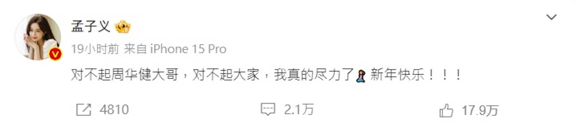 相隔7年,孟子義再次演出新版《射鵰英雄傳之鐵血丹心》2024,今次她不再飾演穆念慈,而是黑化成為梅超風!雖然梅超風殺人唔眨眼,係人見到都嗌驚驚,但孟子義再次憑超高顏值俘虜一堆網友,搞笑留言指甘願死在她的絕技「九陰白骨爪」之下,更再次封她為「最美梅超風」。