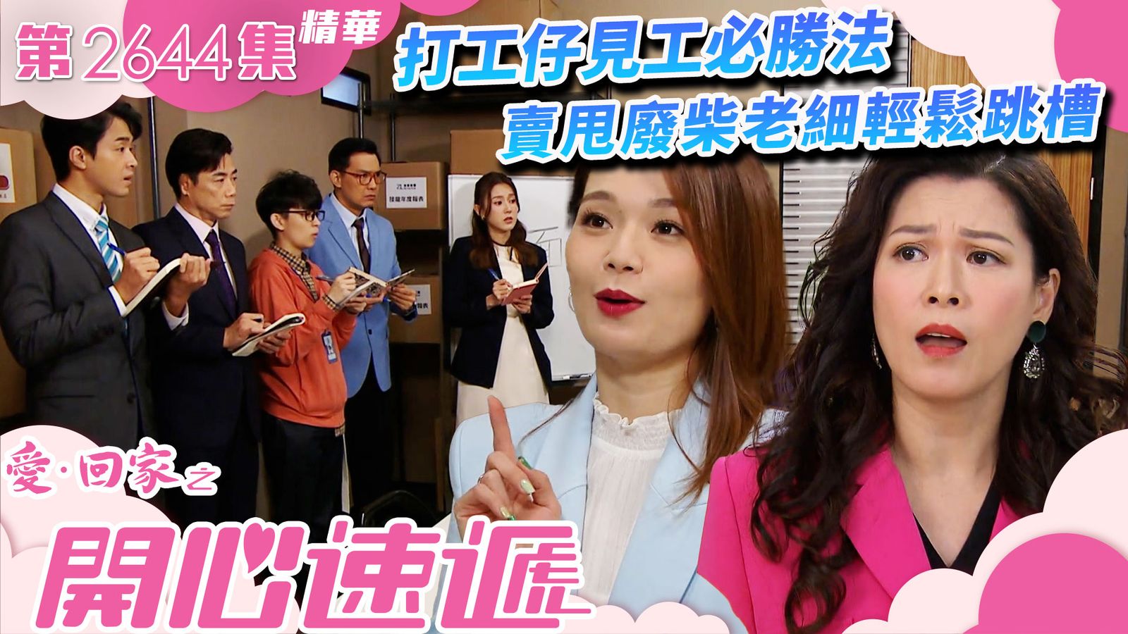愛回家之開心速遞第2644集|打工仔見工必勝法 賣甩廢柴老細輕鬆跳槽點讚分享撰文:渣渣輝 發佈日期:2025-09-17 12:31【愛回家之開心速遞第2644集】打工仔見工必勝法 賣甩廢柴老細輕鬆跳槽若水(呂慧儀)偶然發現鐵面陳(王致狄)打算跳槽,便傳授他一些面試秘技,成功助他順利轉職。若水之所以精通面試技巧,原來是有特別的原因。Andy(崔錦棠)等知悉若水是面試達人,紛紛向她請教,若水遂開班授課,循循善誘地指導各人。眾人的面試表現明顯改善,消息不脛而走,更多人前來求教;怎料若水其後態度突變,竟化身為「魔鬼導師」,令眾人飽受「摧殘」!她的轉變,背後原來內有文章…… +4#愛回家#愛回家之開心速遞#林淑敏#呂慧儀