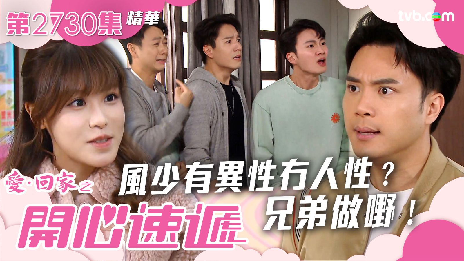 今集《愛回家之開心速遞》第2730集劇情,充滿了搞笑與情感,故事圍繞著金城安(周嘉洛)、朱凌凌(吳偉豪)、艾頓壯(焦浩軒)和風少(陳浚霆)幾位好友的旅行計劃,由於各種原因一再延期,卻引伸了風少重色輕友的事件!