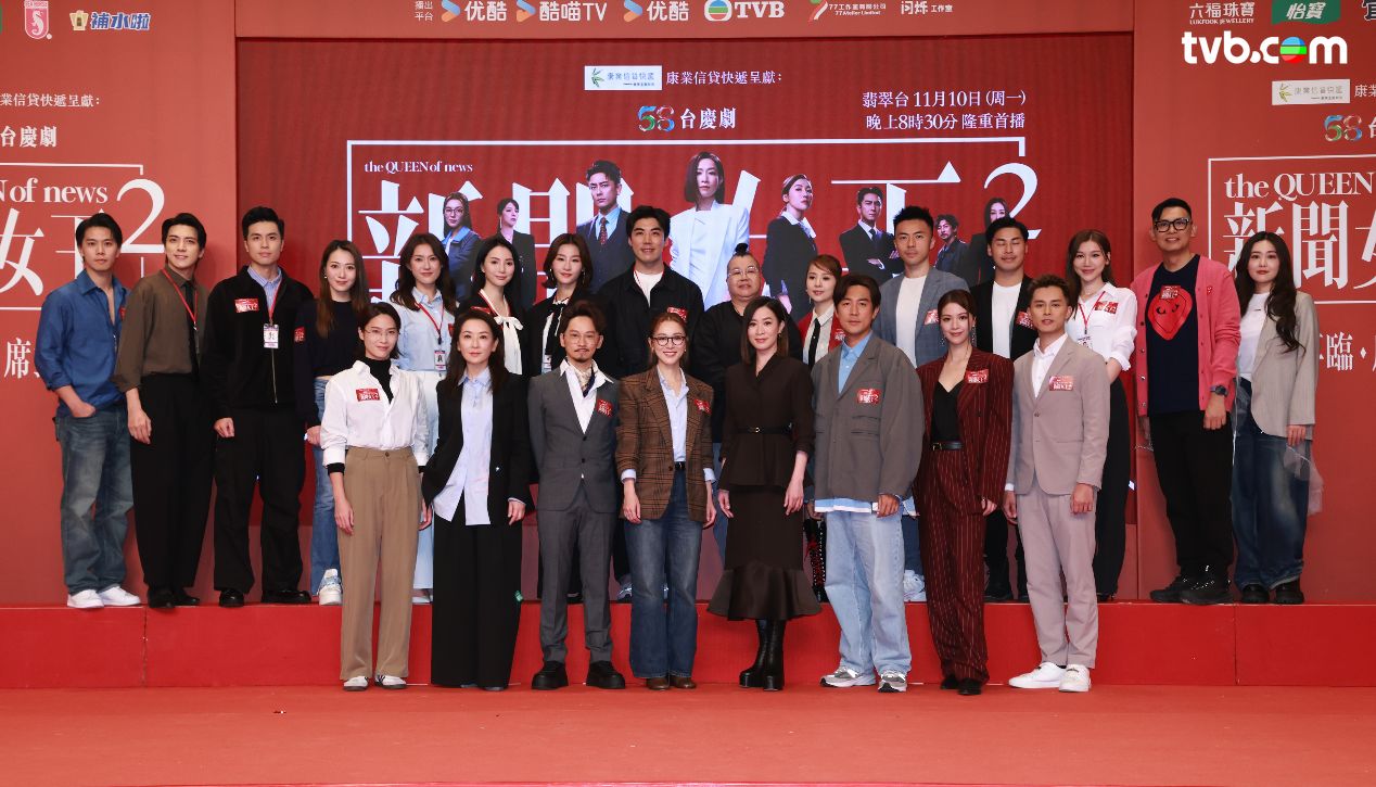 《新聞女王2》翡翠台將於11月10日(周一)晚 8時30分隆重首播。 昨日(2日)佘詩曼、王敏奕、譚俊彥、陳曉華、鄧智堅、龔慈恩、何廣沛、蔣祖曼、谷婭溦、郭柏妍等演員出席劇集記招,為《新聞女王2》造勢。
