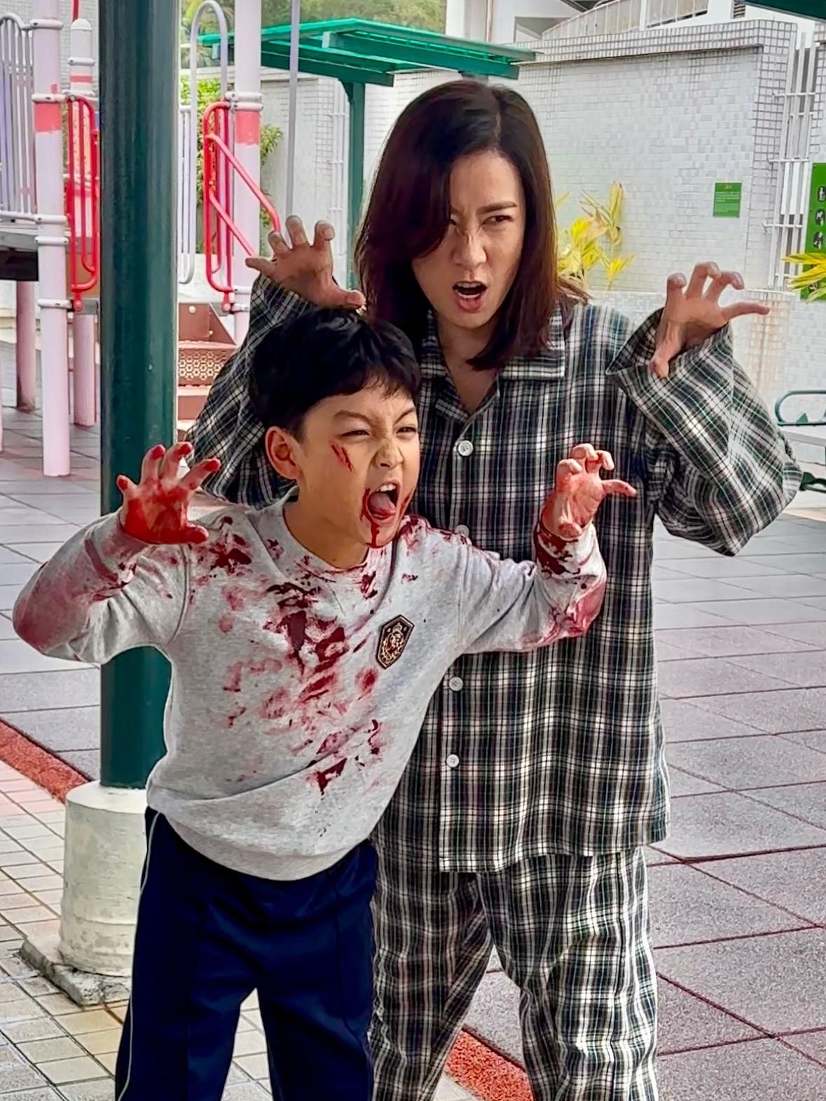 他續說:「鏡頭後嘅阿佘 @charmaine_sheh 真係好識同小朋友相處,完全無架子,扮訪問撩我傾偈又唔介意陪我扮👻」。