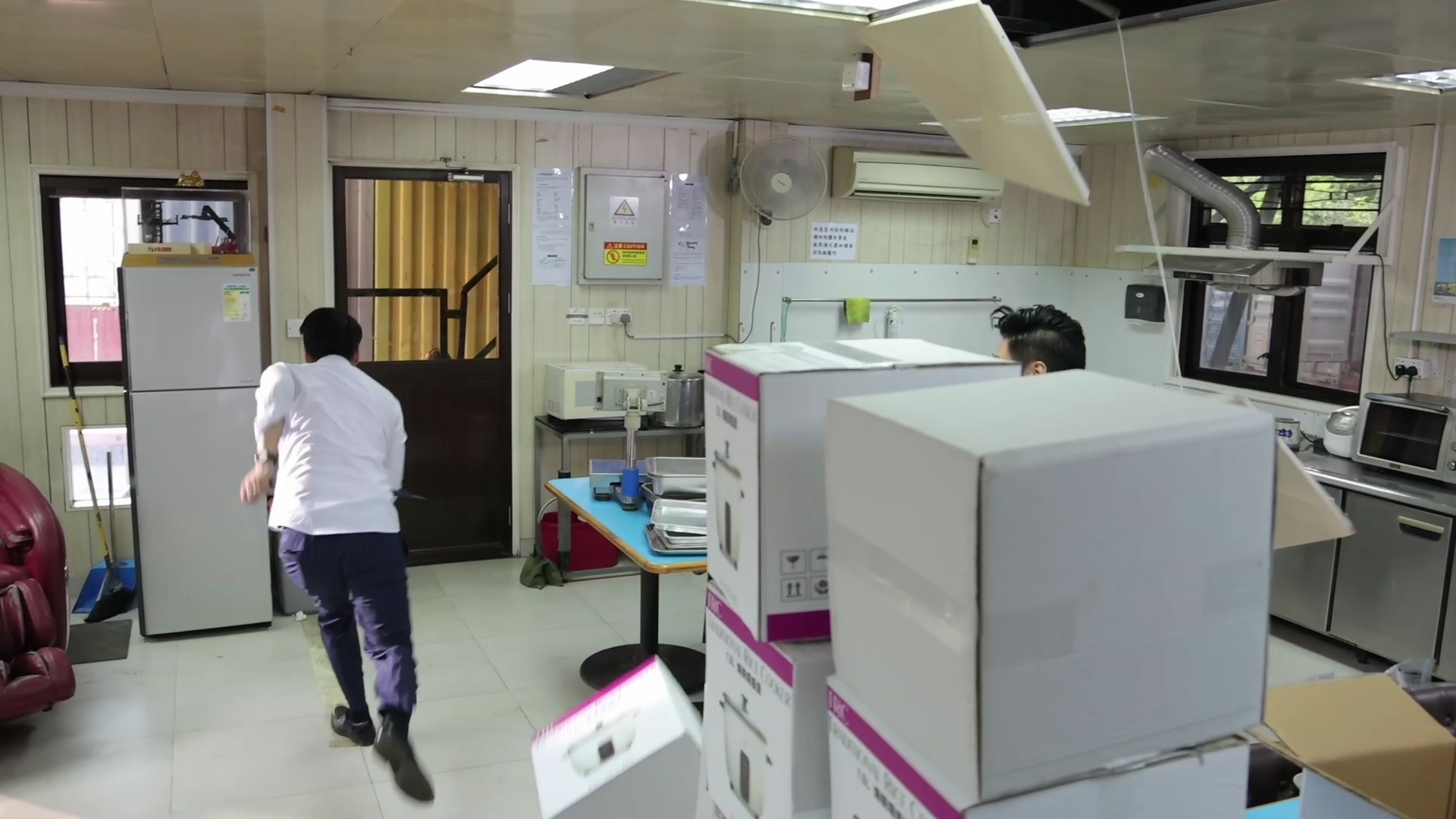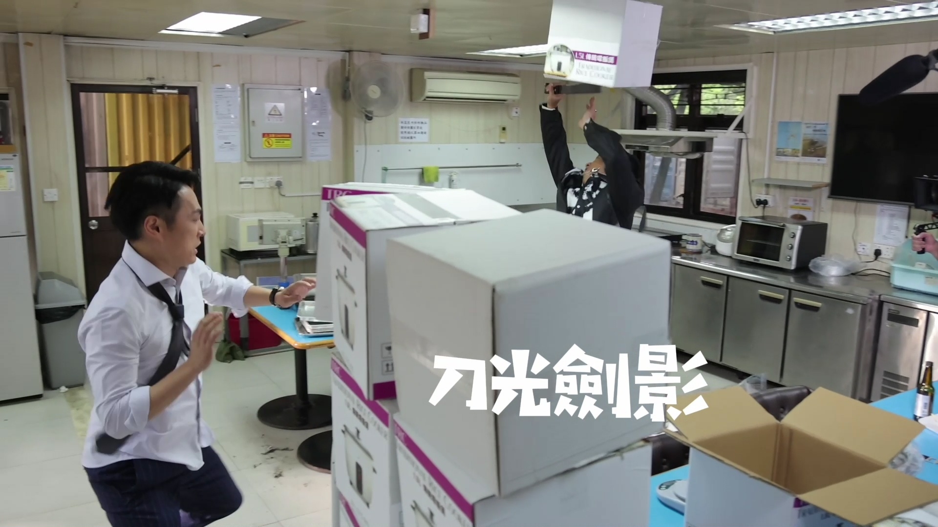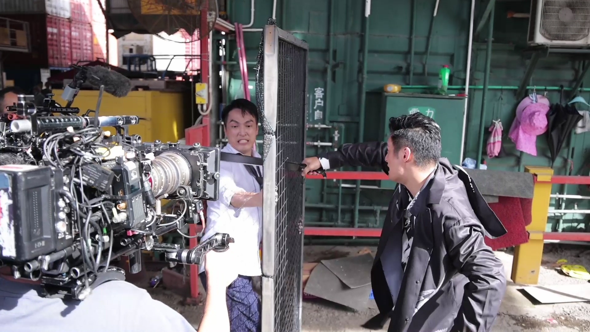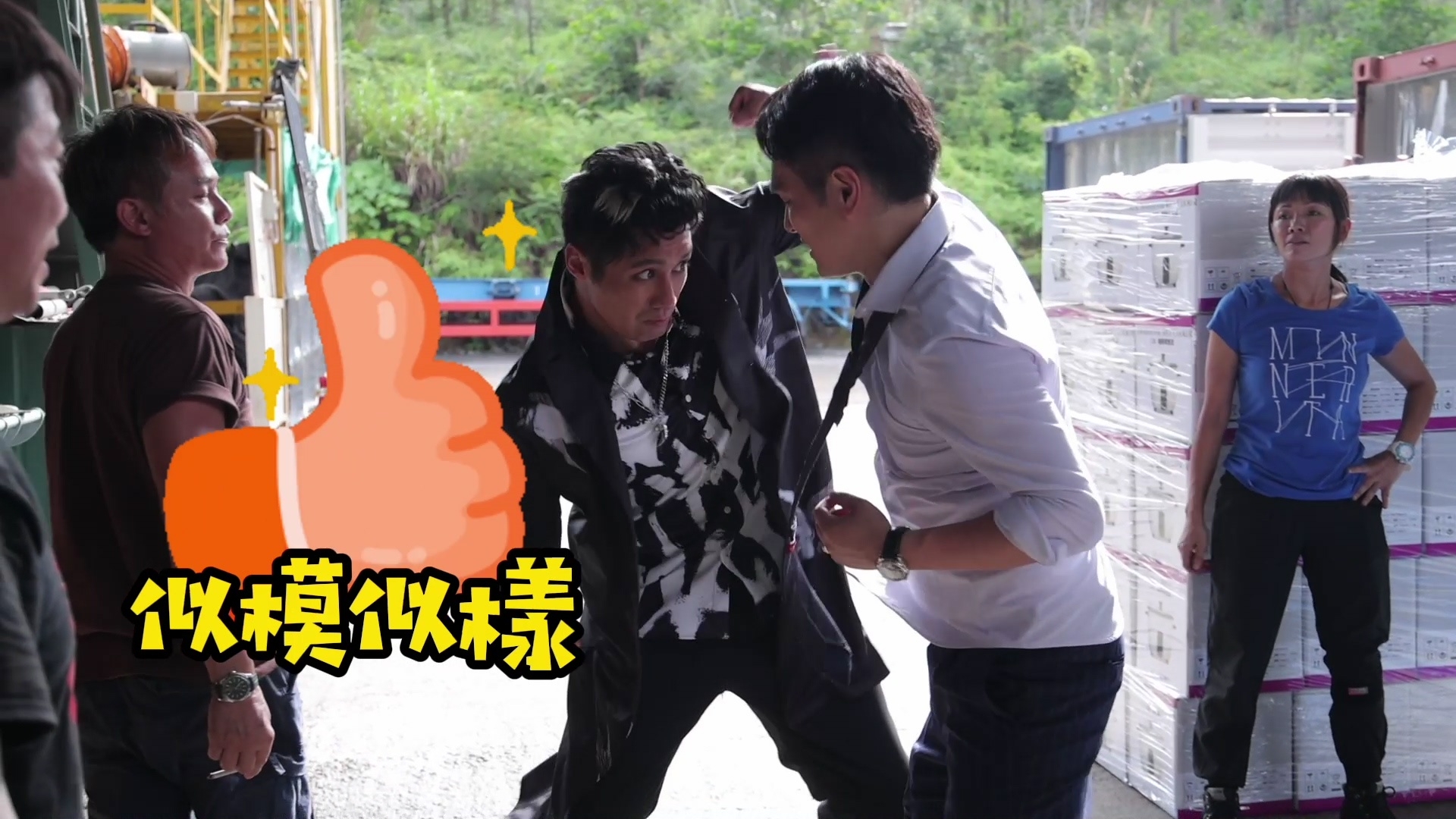 林景程與翟威廉的打鬥戲雖然只有約1分半鐘,但拍攝過程絕不簡單!官方釋出相關場口花絮片段,翟威廉拿刀揮斬景程時,屋頂其中一塊天花意外落下,並狠狠擊中威廉的額頭,幸好威廉並沒有大礙,休息一會便重新投入拍攝,非常專業。拍攝當日正值33度高溫,穿着長袖的兩人不但要奪命狂奔,還要瘋狂埋身肉搏,兩人賣力演出拍到身水身汗,認真唔簡單。![]()