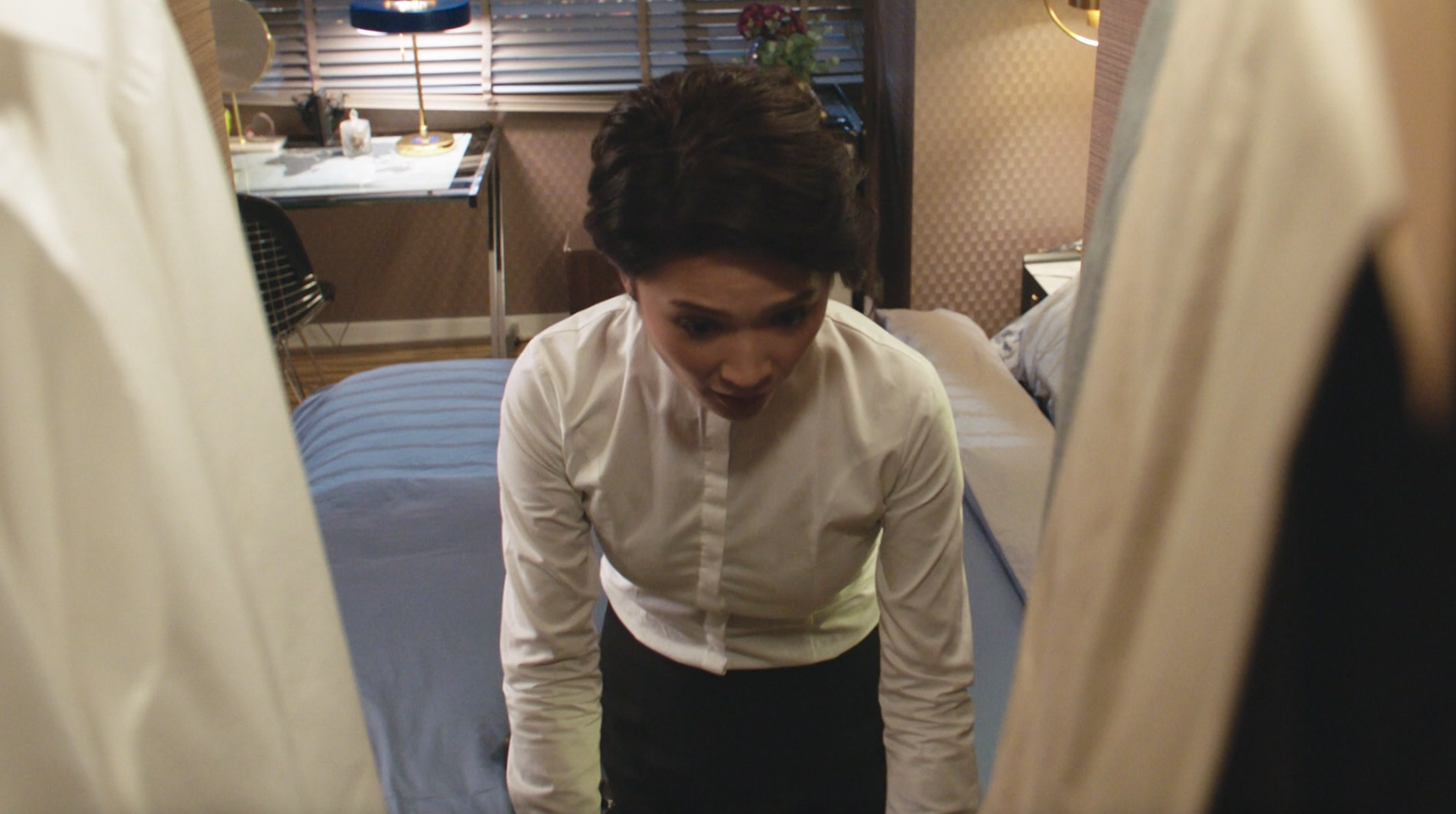 劇組更爆料,為了配合蔣祖曼在劇中飾演大狀的「專業形象」,所有底衫褲的顏色及款式選擇均由專人負責,非常有講究!其顏色以素色及深色調為主,凸顯Hazel為人低調一面,款式典雅大方卻添加喱士花紋作襯,將Hazel的性感及成熟女人味完美滲透散發出來,而底褲上的小蝴蝶結裝飾則體現了Hazel埋藏的少女心和多面性。不知細節控的你又是否注意到了呢?