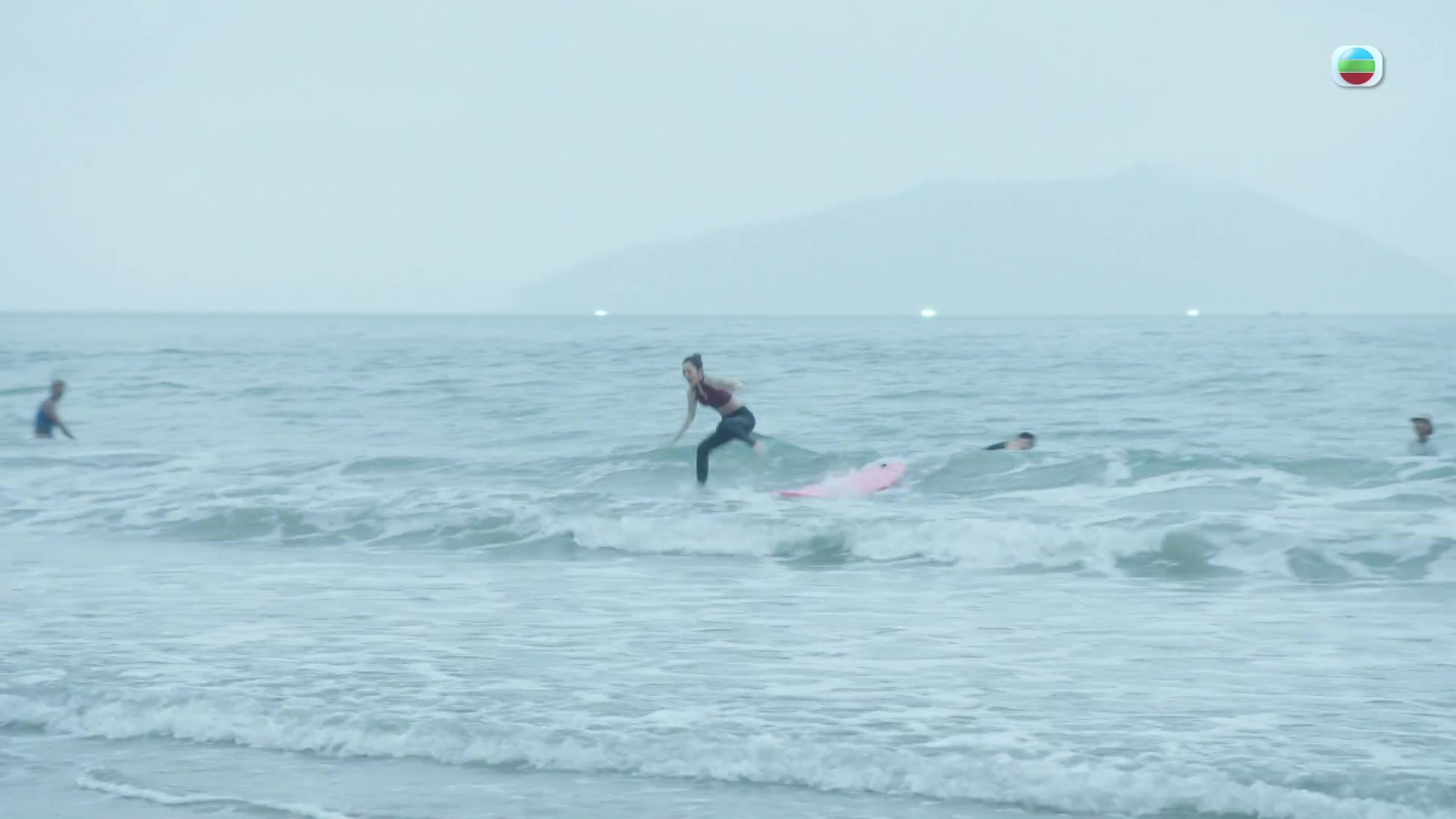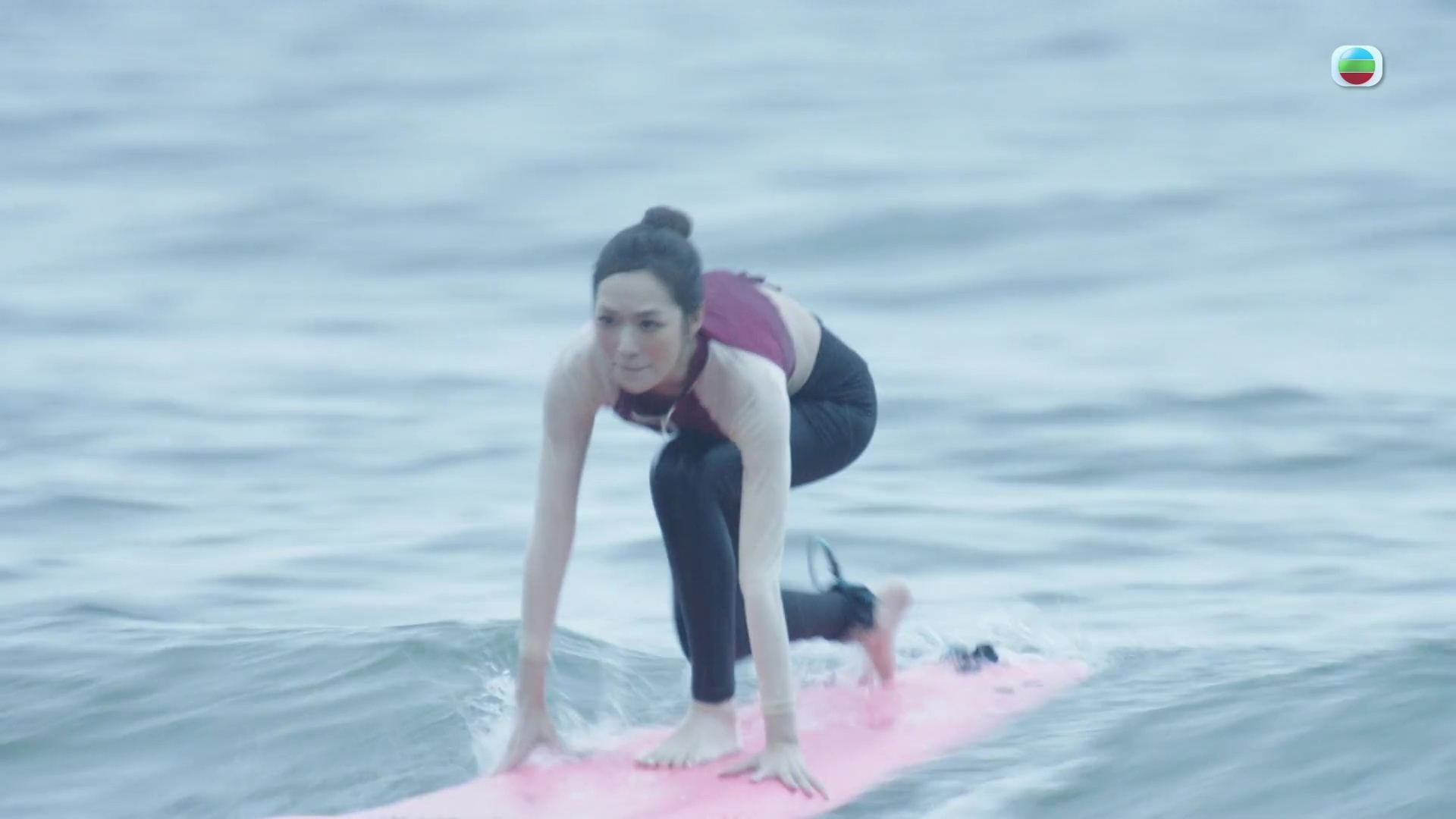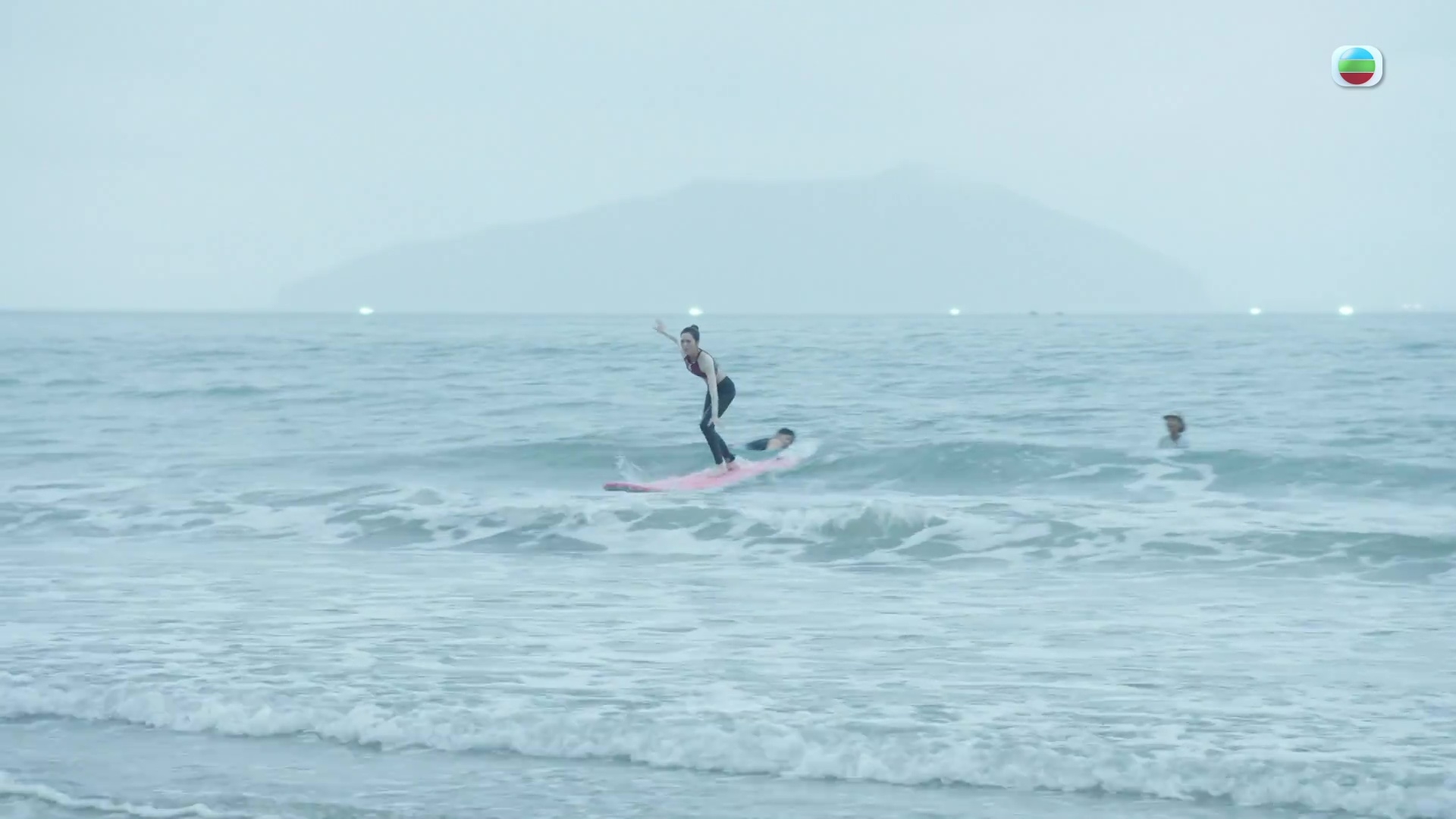 昨晚最搶眼一幕,非馮盈盈玩滑浪莫屬。以露腰潛水衣上陣的盈盈大晒零贅肉纖腰,Fit到冇朋友!雖然滑浪場口只有短短數秒,但盈盈非常認真對待,事前更特意上堂學習滑浪,盈盈受訪時說:「之前都只係喺電影入面睇人哋滑浪,覺得好陽光好有型,自己滑浪都真係因為今次拍劇而第一次接觸,原來滑浪都幾好玩,拍完劇之後都想繼續學!」盈盈續透露拍攝當日天氣不似預期,增加了拍攝難度,她說:「當日陰天又大浪又大風,拍唔出理想中嘅陽光與大海嘅效果。過程都有啲艱辛,跟住我哋落水拍攝嘅攝影師同埋導演,佢哋嘅眼鏡都因為太大浪而被沖走咗,可想而知當日嘅海浪係幾咁猛烈,所以嗰啲衝浪畫面都係我哋成個團隊用汗水同埋心機捕捉返嚟。」