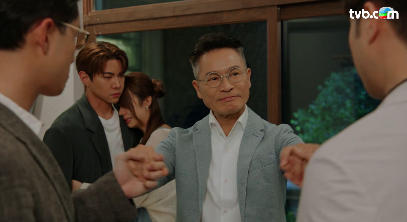 他再捉着兒子學賢(羅天宇飾),眼紅紅忍着淚水表示「學賢應承我搬返嚟住,當阿爸對你最後一個要求。」仰天再捉住兩位兒子學禮(何廣沛飾)和學勤(陳浚霆飾)的手,叮囑二人表示「睇住公司,睇住呢頭家唔好畀佢散。」