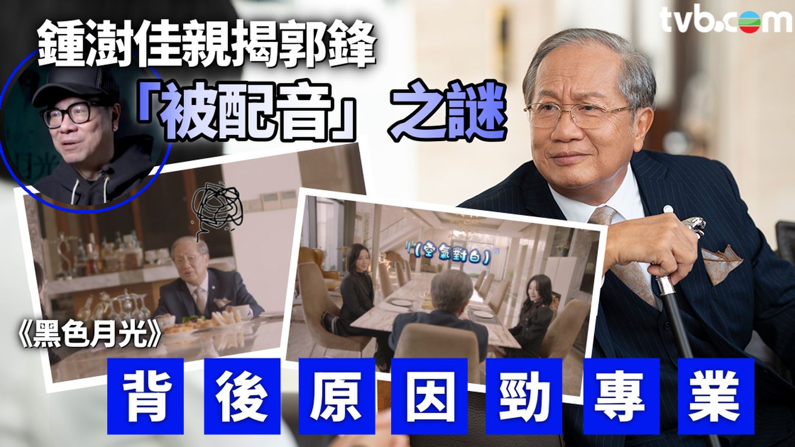 對此,總監製鍾澍佳親揭箇中真相,原來郭鋒「被配音」背後原因相當專業,事緣原來《黑色月光》拍攝期間遇上非常嚴重的流感爆發期,兩組劇組的台前幕後幾乎全部中招,郭鋒也不例外。佳導說:「佢中咗(流感)之後,連聲都開唔到,就休息咗一至兩日,但一路都係拍緊佢嘅主景。」佳導續指到了第三天,郭鋒為免阻礙拍攝進度,主動要求開工:「去到第三日佢自己話唔得喇,我都要開工喇,再咁樣落去(阻到進度)唔係幾好,寧願之後再配音都要返嚟拍。所以現場收音係收到郭鋒老師好細嘅聲,呢個就係郭鋒老師嘅專業同敬業,捱住病都要拍。」觀乎無綫官方社交網播放片段,抱病上陣的郭鋒,在正式出街的片段中依然表情十足、渾身是戲,難怪連佳導也大讚專業。