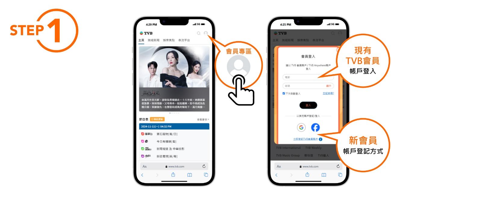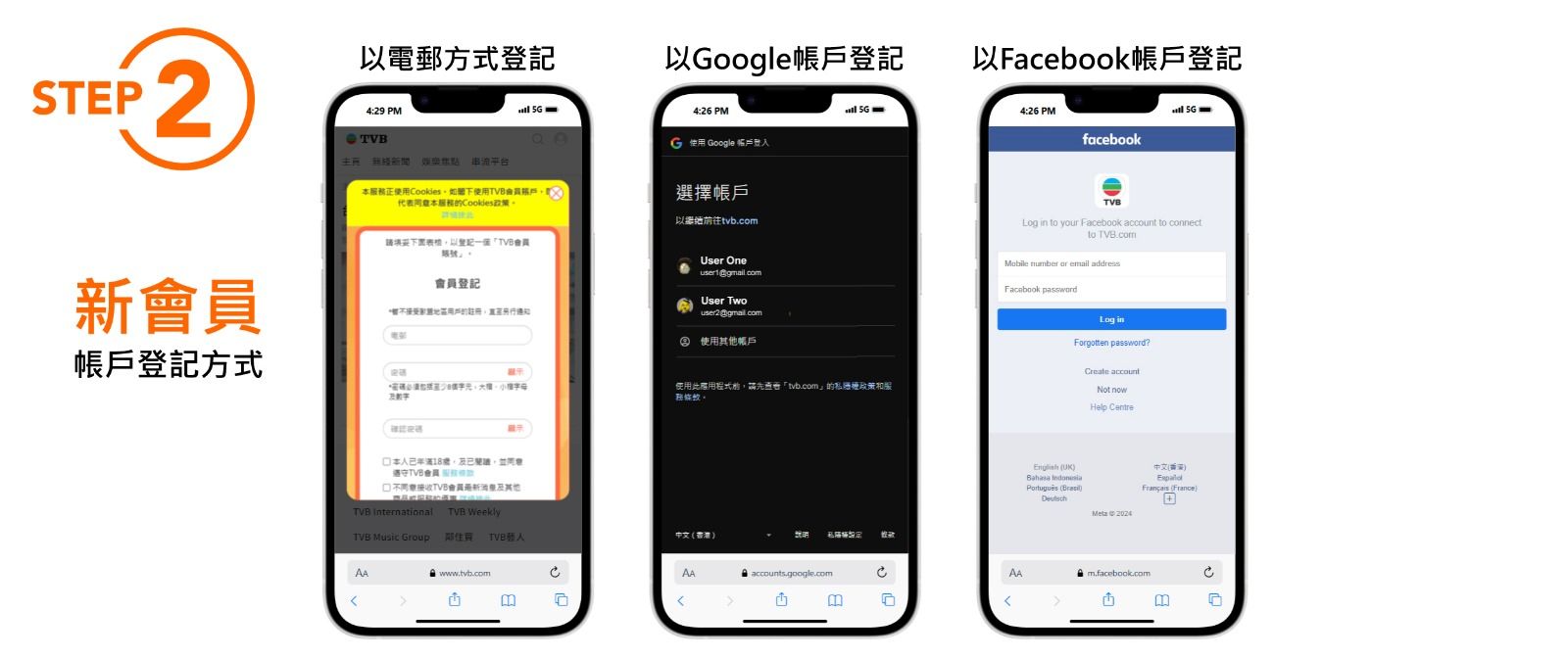2.以現有TVB會員登入 或 新會員帳戶登記