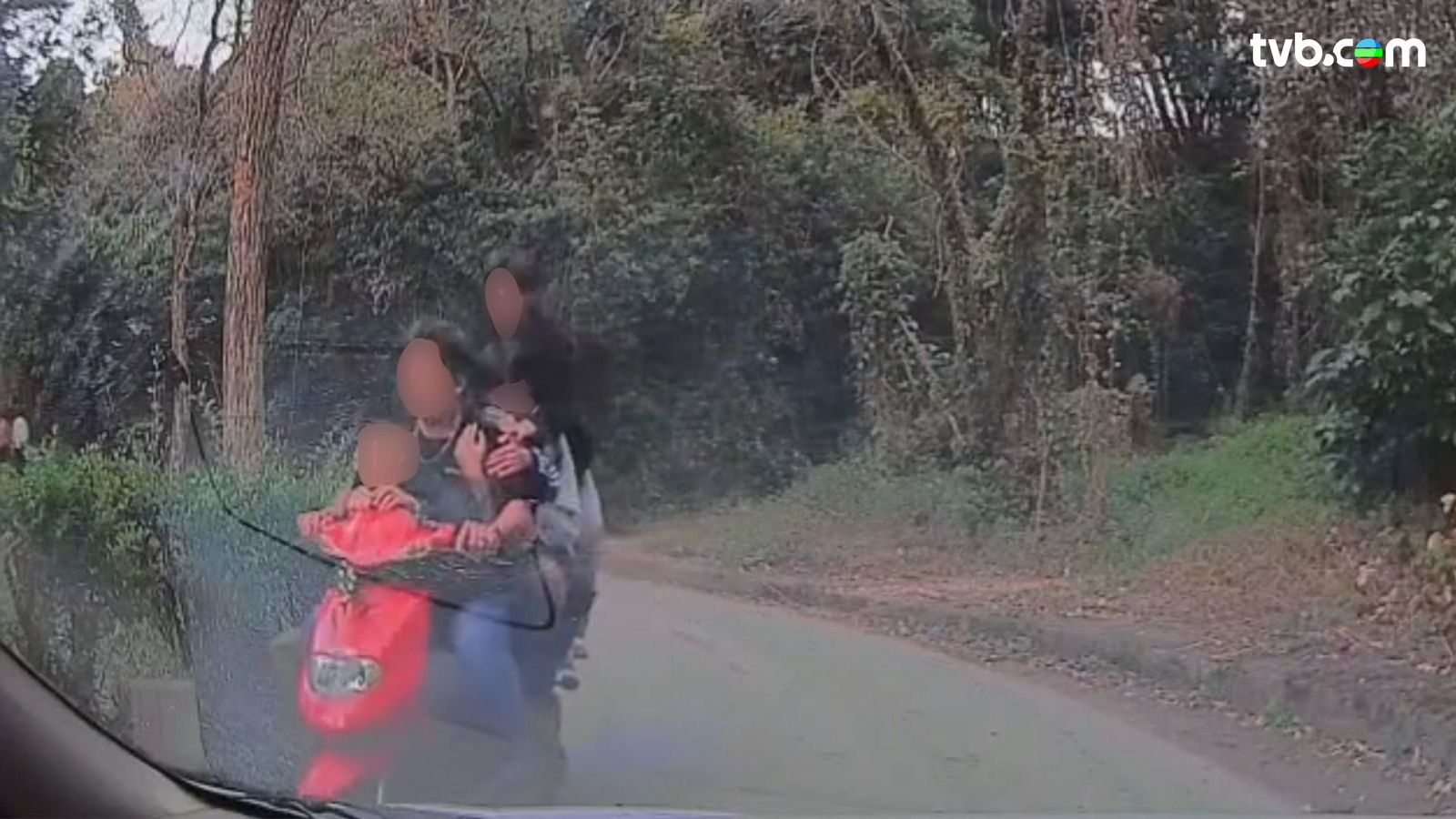 網上流傳一段車Cam片,顯示於 2026年1月10日下午約 5 時 23 分,元朗雷公田附近山路出現一輛紅色電單車,涉嫌嚴重超載;片中可見,除男司機外,車頭位置竟坐有一名年幼小童,後座更擠迫地坐著四名乘客,甚至出現「人疊人」情況 ;更令人側目的是,全車六人均未有佩戴法例規定的防護頭盔,完全無視道路安全!