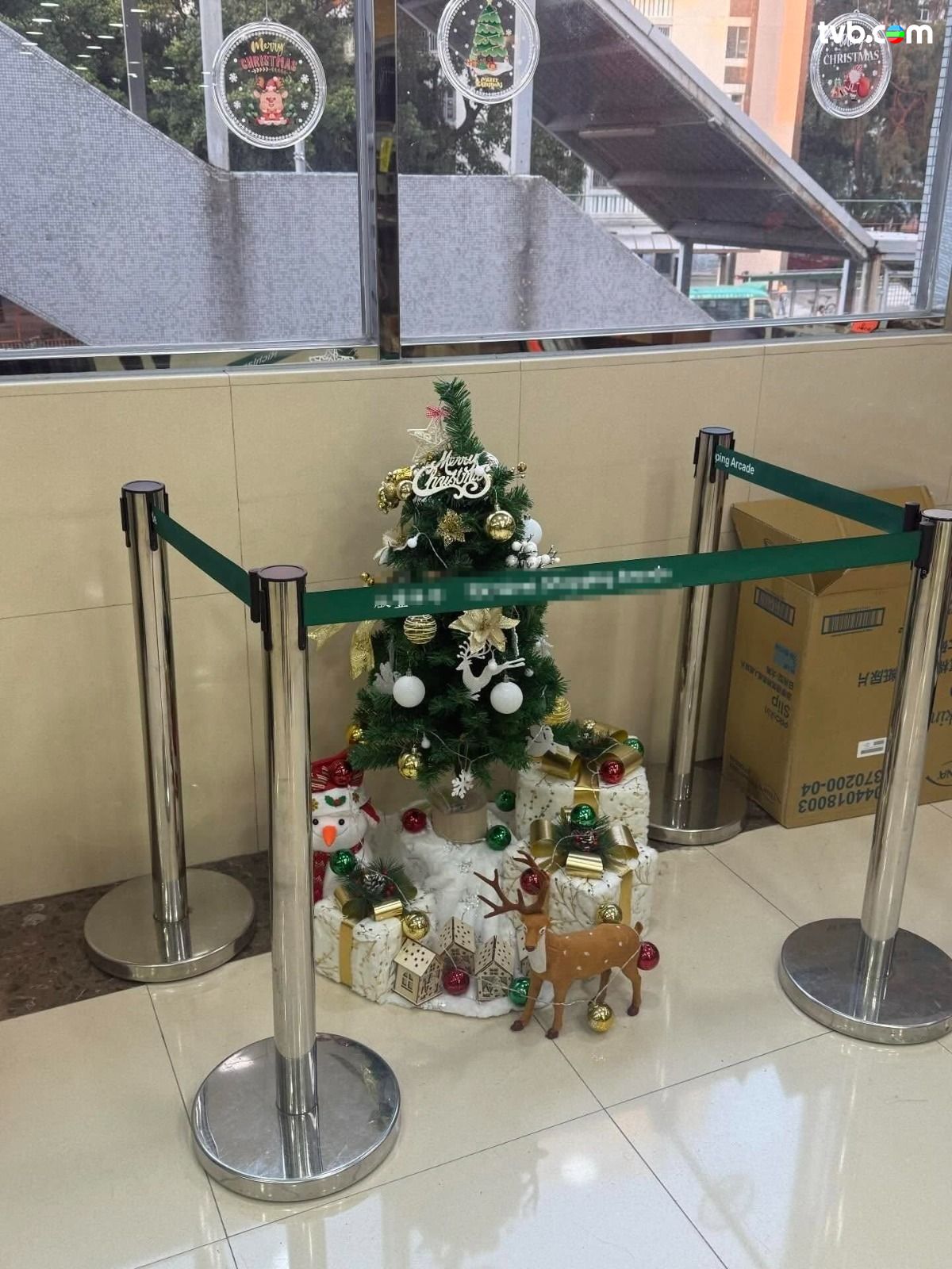 有網民上載照片,攝於屯門區某商場,相片可見,商場擺放了一棵迷你聖誕樹,四處亦被不銹鋼圍欄連同綠色帶「重重包圍」,樹腳邊亦擺放了幾份禮物盒、公仔與小鹿裝飾,非常簡單;樓主亦在帖文笑言:「啟豐商場棵聖誕樹,可能係全港商場最迷你!」