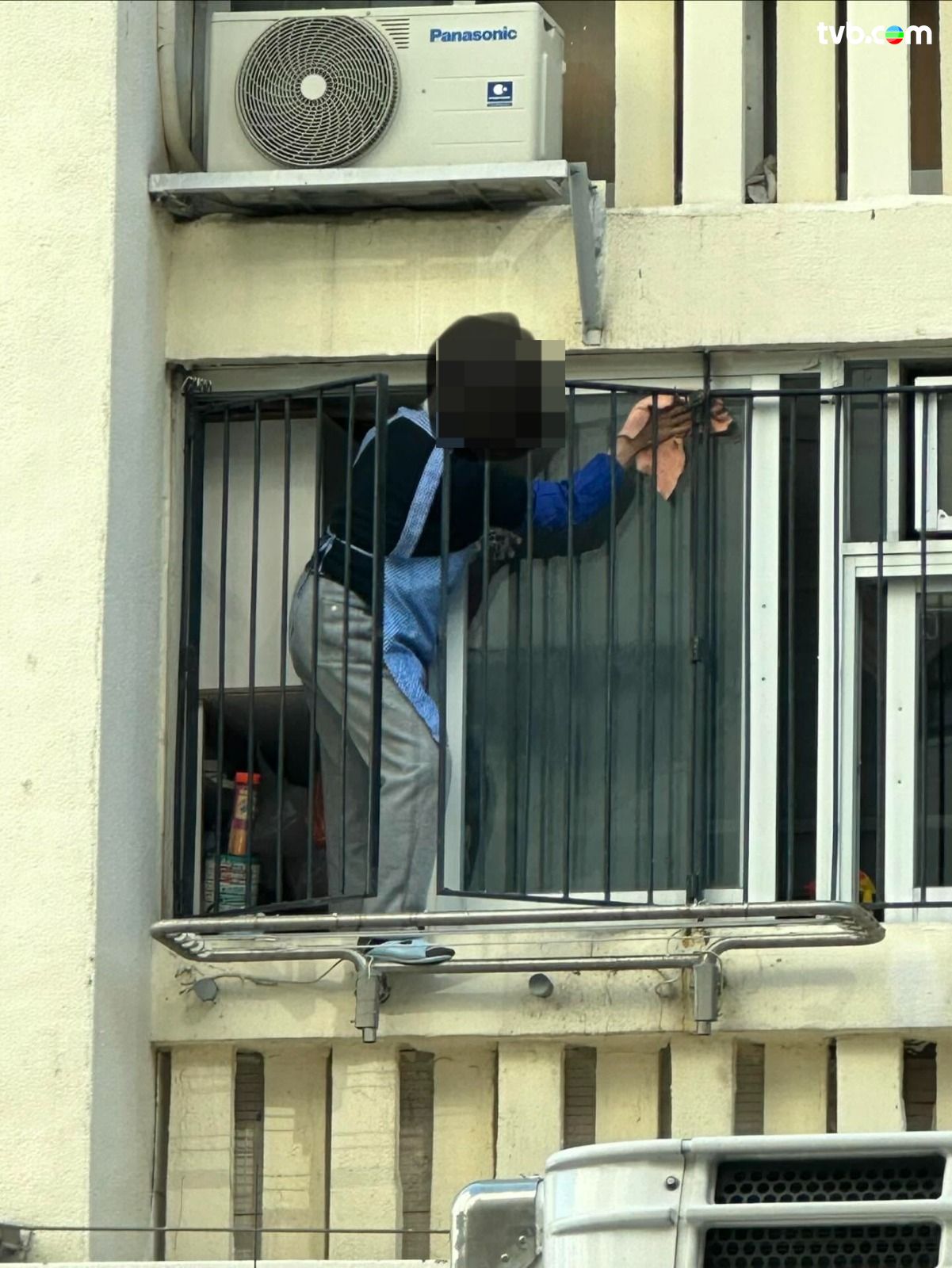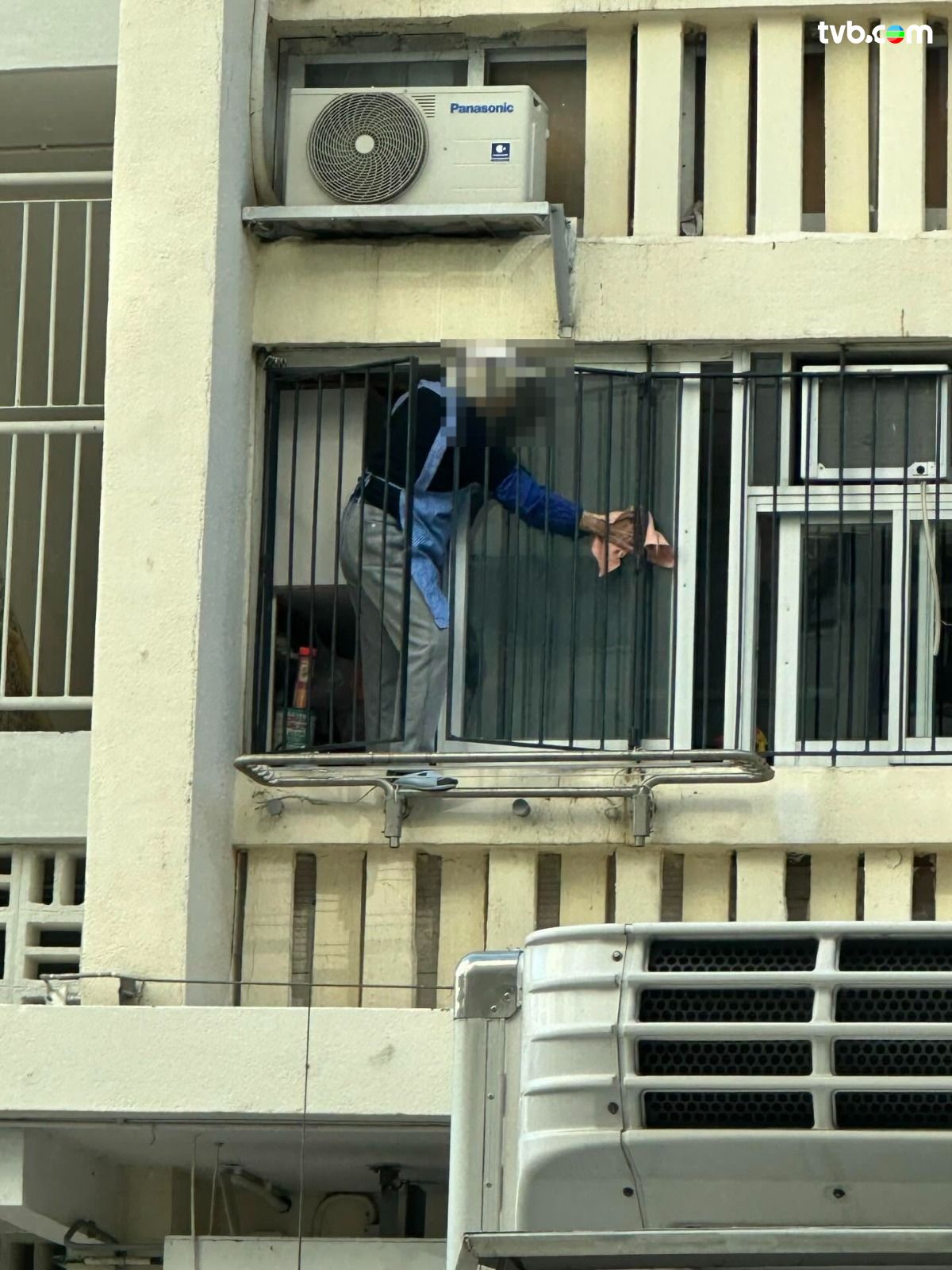 有網民在社交平台Threads發文,分享在屋邨目睹的驚險場面;相片可見,一名婆婆疑為清潔窗戶竟不惜「搵命博」,大膽地攀出窗外,半邊身幾近是懸空,腳更踩在晾衫架上借力,畫面相當牙煙!樓主不禁言道「雖則話係一樓又有個小平台,但跌落嚟都可大可小。就嚟歲晚大掃除,勸吓屋企長者最好都唔好搵命博,安全至上呀!」