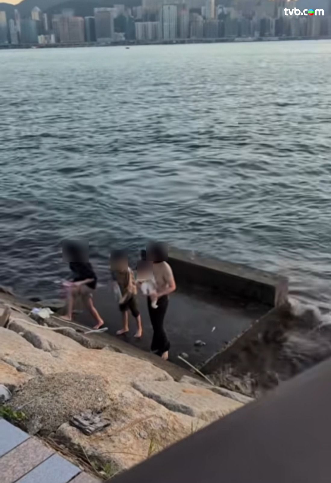 有網民上傳影片,指早前(8日)於啟德海濱撞正一家人「玩命」!影片可見,一名成年人懷抱嬰兒,兼攜着兩名小童,一同走落防波堤下的平台遊玩,途中保安曾勸阻但未果,事主仍堅持犯險。而事發位置平台僅略高於海面,周遭未見防護或救生設施,非常危險。