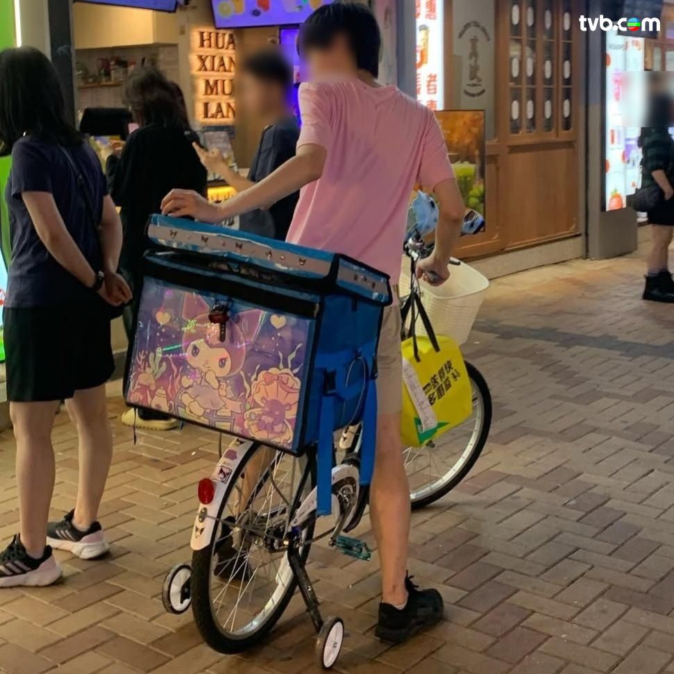 有網民於Facebook群組上載相片,可見一名外賣員在街頭準備送餐,但他用作代步的單車卻非常搞笑!單車後方除有一個印有卡通人物Kuromi的巨型外賣保暖袋,其單車後輪的兩側竟還加裝了兩個輔助轆,畫面極具喜感!連樓主都話道:「為左搵食,都要頂硬上」。