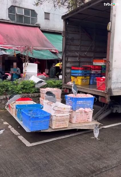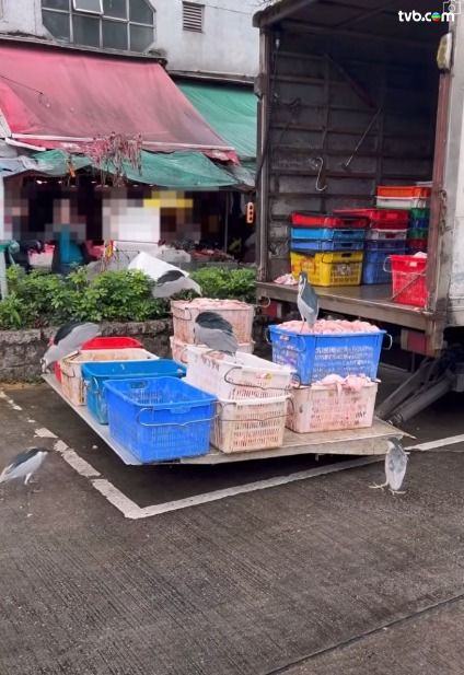 最近有網民分享奇景,影片疑攝於大埔富善街一帶,畫面可見路邊停泊了一輛運送肉類的貨車,尾板放滿一堆裝有生肉的膠籃,期間竟引來數隻雀鳥在籃邊「開大餐」,盡情啄食生肉,惹來衛生隱患!樓主更在貼文中戲言:「司機:你再唔返嚟,啲肉俾啲雀食晒㗎啦!」