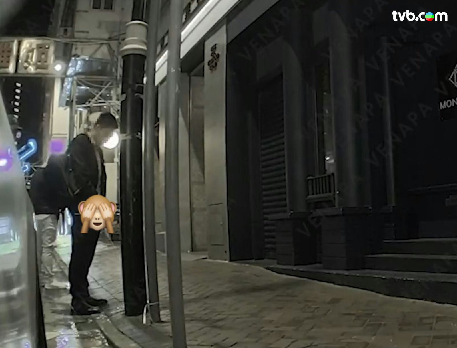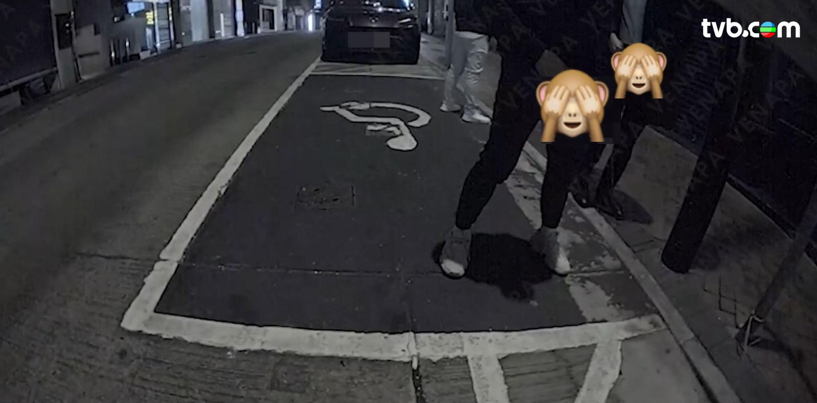 網絡瘋傳一段影片,事發於1月6日,凌晨近1時,地點位於尖沙咀山林道近彌敦道一帶,影片顯示三名男子行經一輛Tesla私家車後方時突然停下,其中一名戴黑帽及一名穿黑褸的男子,竟當眾拉下褲鏈向路邊燈柱位置小便,雖然二人並非直接將尿液射向Tesla私家車,但飛濺的尿液恐已波及車身,黑褸男完事後地面更遺下大灘水跡;至於另一名白褲男雖未被鏡頭完全拍下,但從其站位推斷,疑似在旁一同「解決」或負責「睇水」!