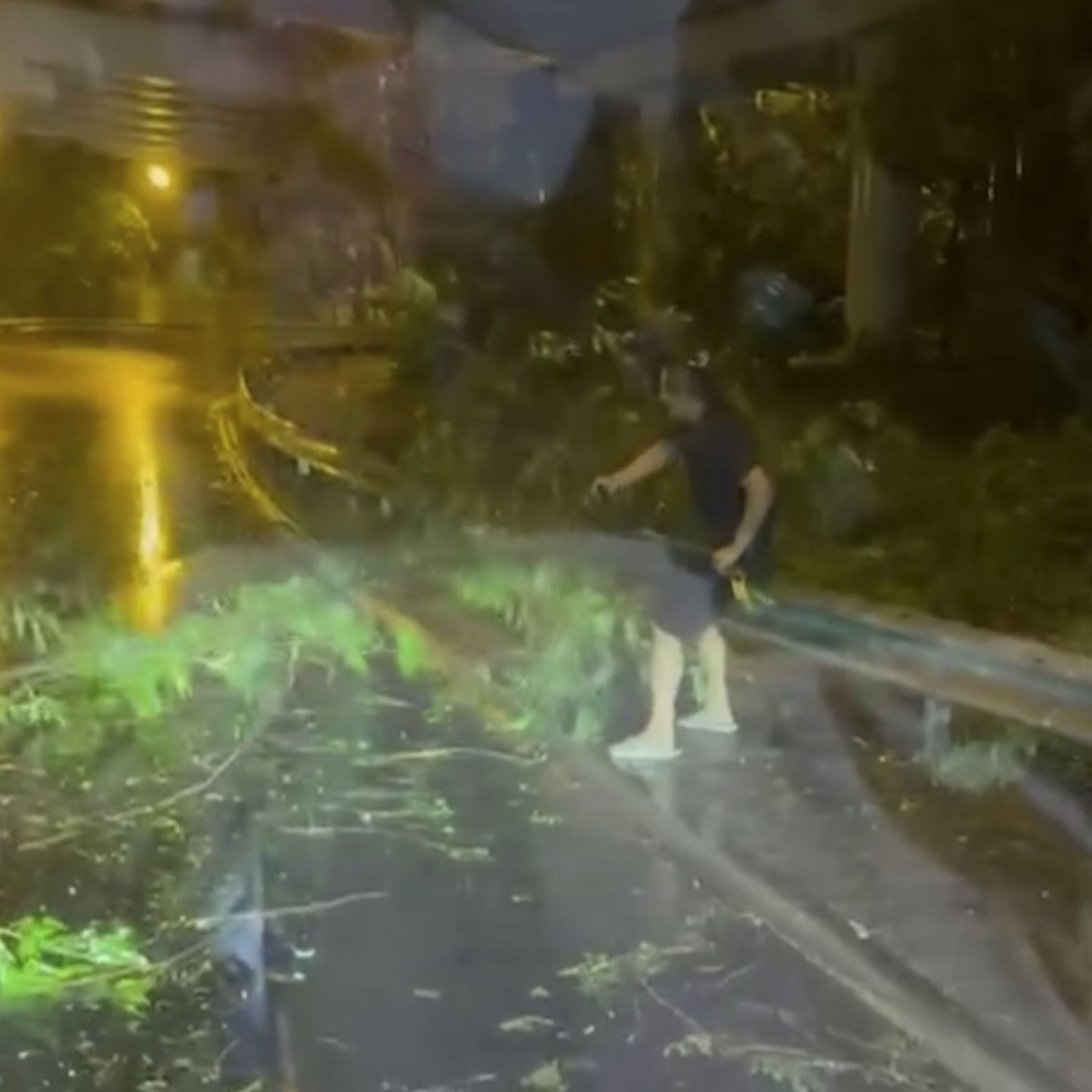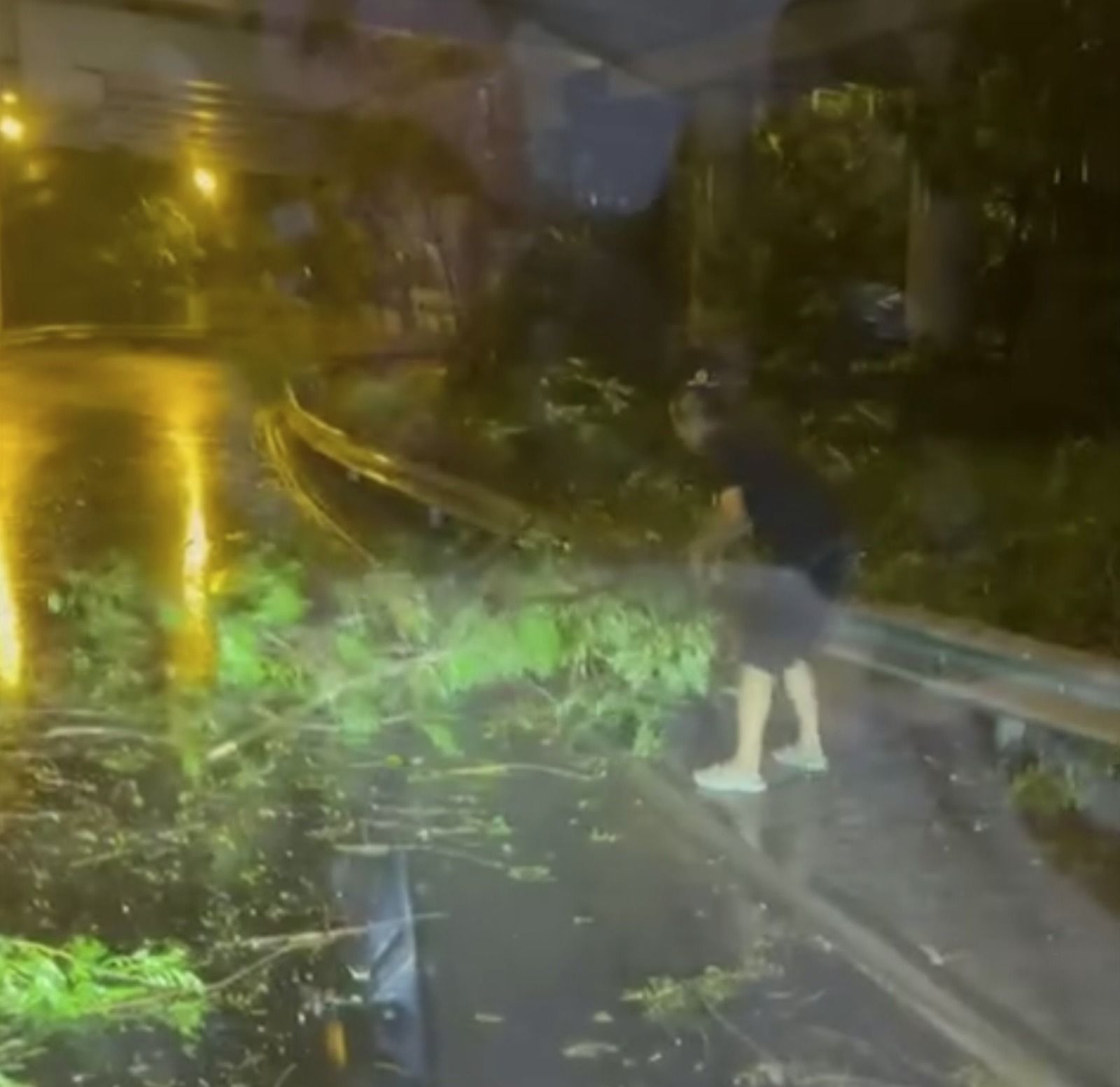 回顧超強颱風樺加沙來襲,不少打工仔亦安排在家工作,無需到回公司上班!但即使在惡劣天氣下,仍有部份市民需要外出工作,謹守崗位,發揮專業。今日( 24日)就有網民在Facebook群組上載影片,指自己負責經營水果店,即使早上懸掛十號風球,仍然需要外出送貨。惟影片所見,樓主正身處大埔一條公路送貨,前方被倒塌的樹阻擋,他則主動走前執起一大束樹枝,把它們移離馬路,才折返車上繼續送貨。