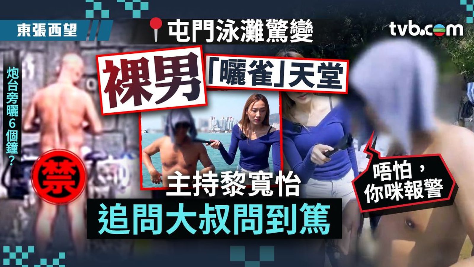 《東張西望》攝製隊經過長時間觀察,終於發現有大叔於泳灘海邊裸曬。主持黎寬怡持續追問,一路問到篤。該名男子矢口否認,主持拿出影片為證,對方推說他只是在這裡換衣服。他堅稱攝製隊認錯人,更揚言不怕報警:「唔怕,你咪報警囉!」