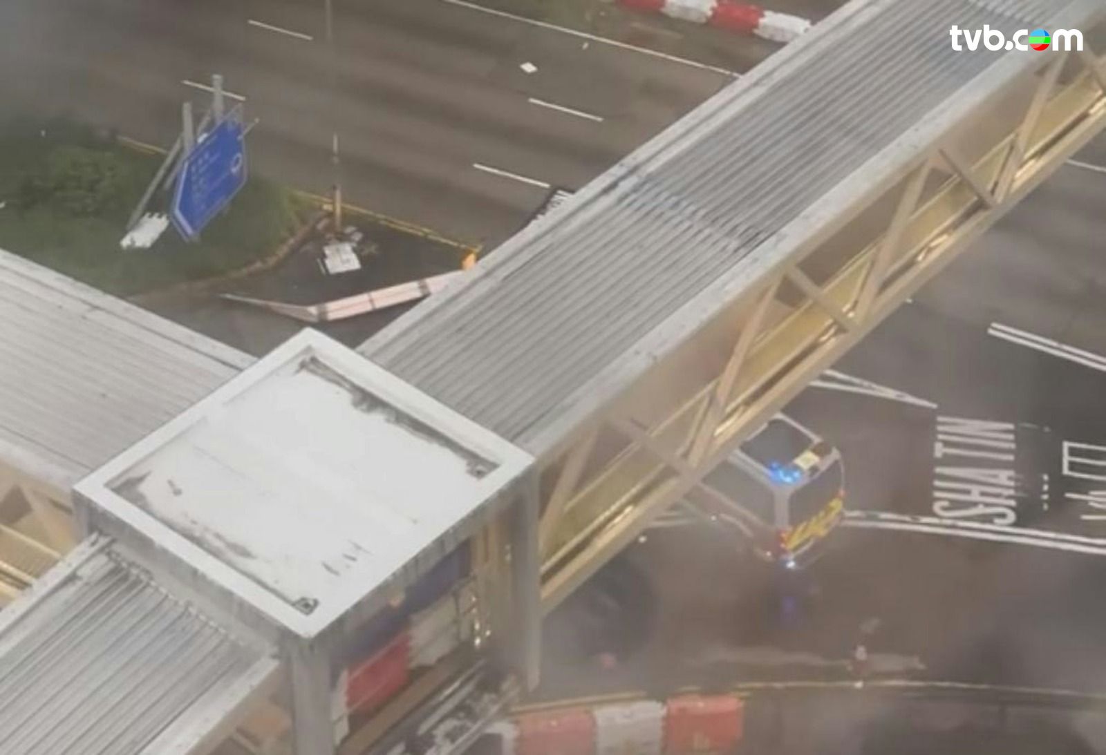 天文台已經除下十號風球,超強颱風樺加沙逐漸遠離本港,但其威力不容小覷。回顧十號風球高掛期間,有市民曾經拍到黃大仙龍翔道斧山道一帶,有行人天橋頂部的鐵蓋,被強風吹到飛起,令到頂蓋部份被摧毁,甚至變成了露天天橋。