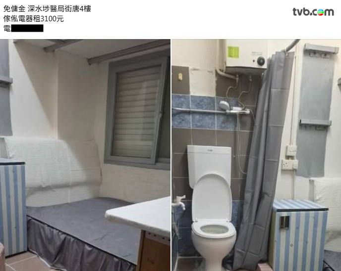 香港寸金尺土,有網民在租屋群組刊登帖文,標榜位於深水埗醫局街唐 4 樓的單位,月租 $3,100 兼包傢俬電器;相片可見,單位空間極度狹窄,設有看似被封閉的窗口,而浴室與睡床僅以一個床頭櫃分隔,實行「與廁同眠」;雖然廁所位置特意升高地台,並配備坐廁及熱水爐,但設計上竟然無門僅設浴簾,不但難以阻擋水花濺出,一旦去水出現問題,污水更會直接溢出至寢區,衛生情況令人擔憂!