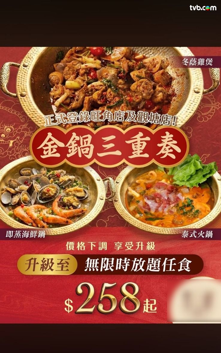有食客發文呻爆,指其早前光顧旺角某火鍋放題餐廳,事主指餐廳宣傳稱「4月10號 開始改為無限時(用餐)」;事主於下午5時入座,選擇每位288元的B餐,三人連加一服務費共約950元,惟單據仍列明此為「120分鐘平日成人放題」;惟至晚上約7時再透過QR code點餐時,系統卻顯示已逾時。事主向向店員查詢,竟獲回覆指「叫餐係有120分鐘,90分鐘可以叫嘢食,30分鐘前最後order」。