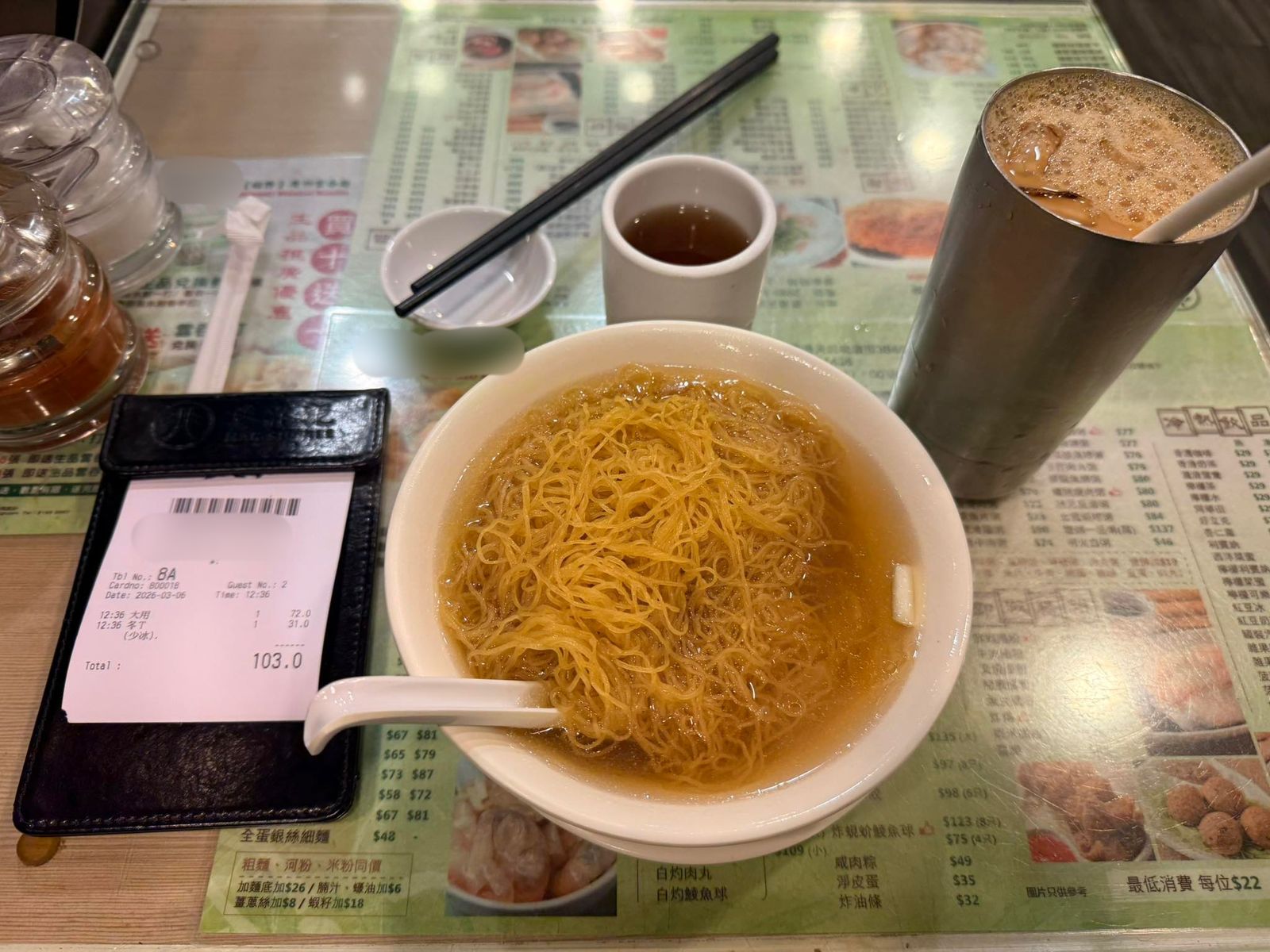 有港人在FB群組「香港茶餐廳及美食關注組」發文,留言:「諗住求其食飲嘢!貴極有個譜,點知原來咁驚喜。」相中所見,樓主嗌了一碗雲吞麵和凍奶茶,見帳單顯示,雲吞麵盛惠$72、凍奶茶$31,合計埋單$103。